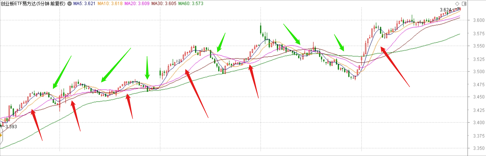 我把最近5天创业板ETF的5分钟K线图放上来。看得很清楚,即使是日线持续上升的趋势,但在5分钟图里面,却完全就等于要么是连续“牛市”,要么就是持续“熊市”。归纳起来,它们操盘的痕迹就是一旦转折上涨就是连续推升,一旦曲线出现拐点,就连续下跌,中间的区间震荡是不存在的。如此整齐划一的行为类似一个人在操作似的。这说明,量化机构行为的确在整体“做市”了。行动的一致性最后结果就是一哄而起,一哄而散,所以A股的A字形态名不虚传。做为普通投资者,容易出现一卖就涨一买就跌的感觉无非就在于没有把握好这里的节奏。