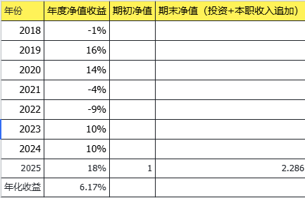 (6)去年的总额加上额外工资作为新一年的新的净值,过程中如果发现好的加仓机会适度将工资收入等投入算作无利息杠杆