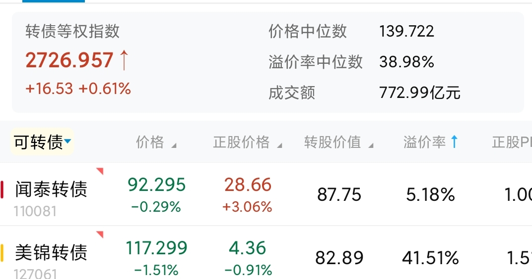 可转债估值太高了,目前只有美锦多一点,欧晶也不到200张了,其他债就是一些观察仓了。这估值不可能一直涨下去吧。
