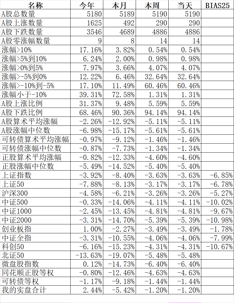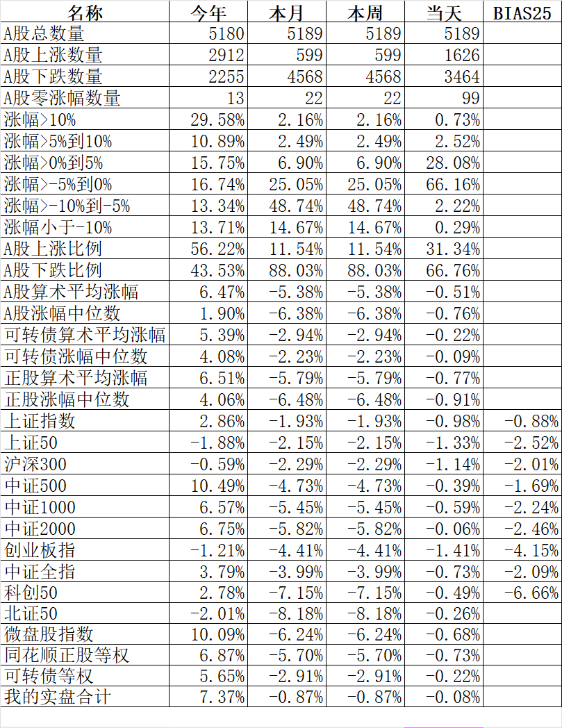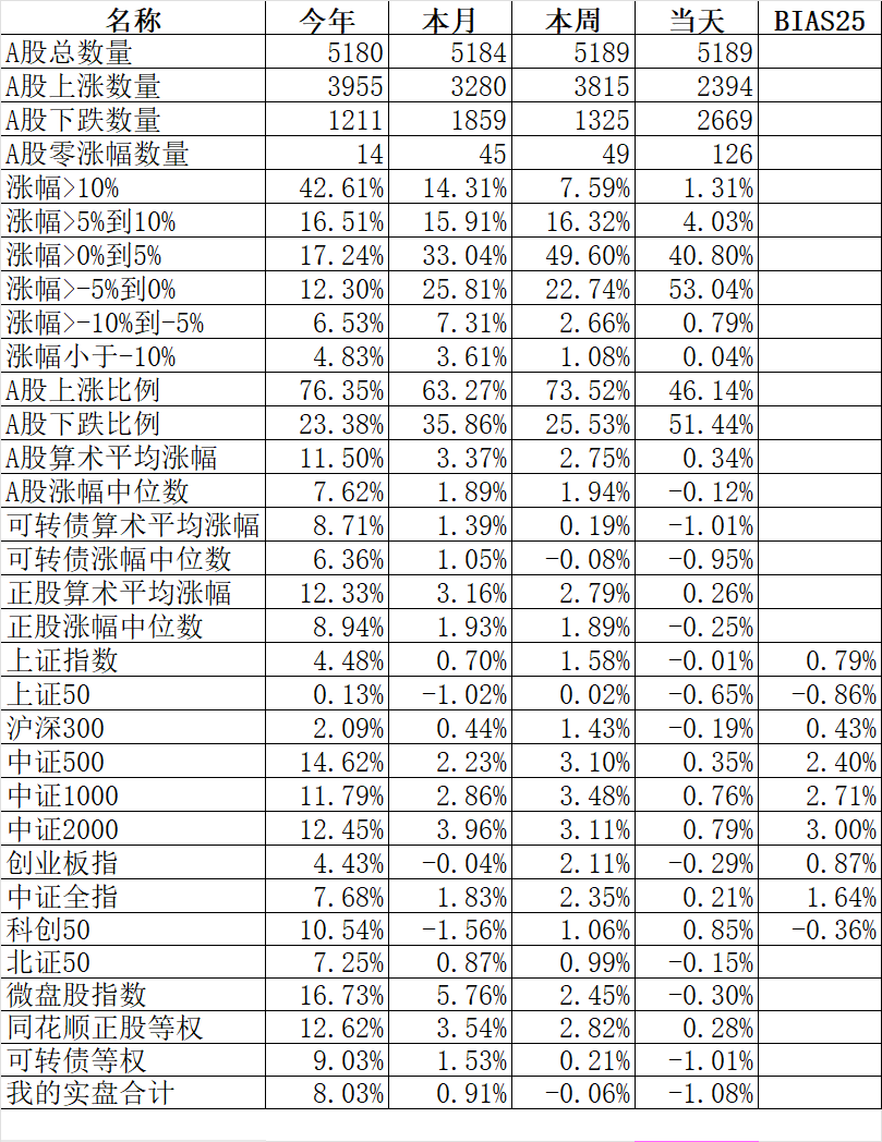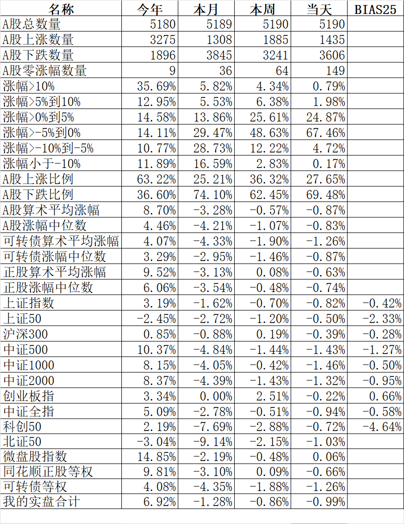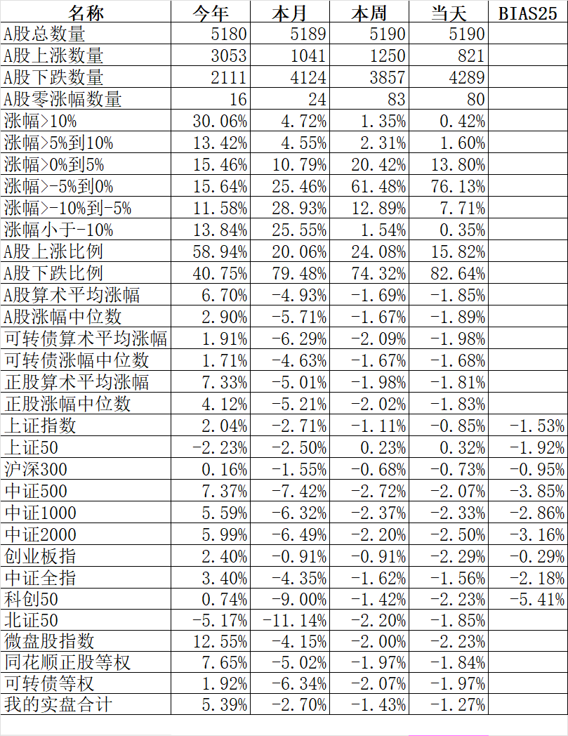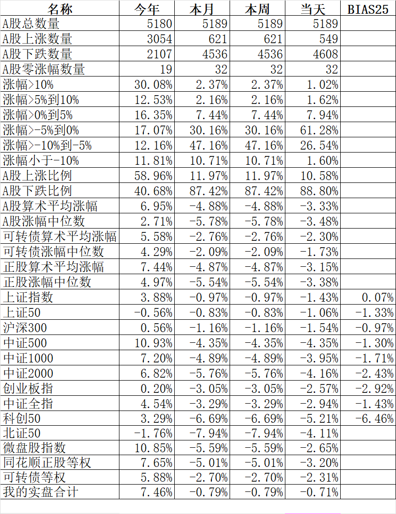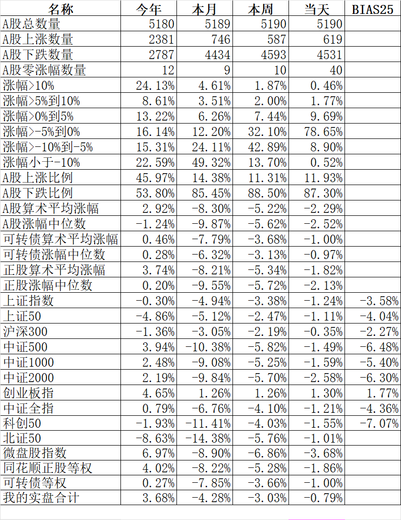 348只可转债平均下跌1.52%,对应正股平均下跌1.75%。我的主仓20只可转债平均下跌0.79%,对应正股平均下跌1.08%。