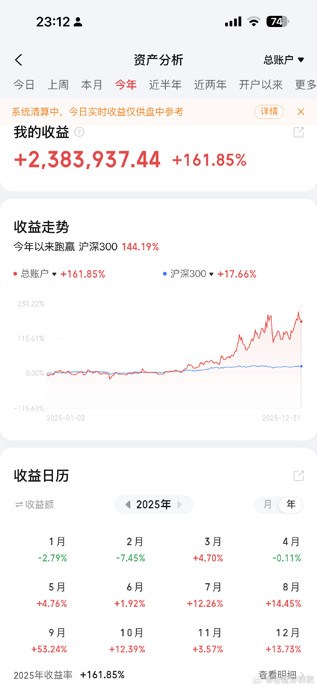 1.2025年场内收益率161.85%(考虑场外逐步提取出来,不计入计算),场内外合计收益约247.8W。