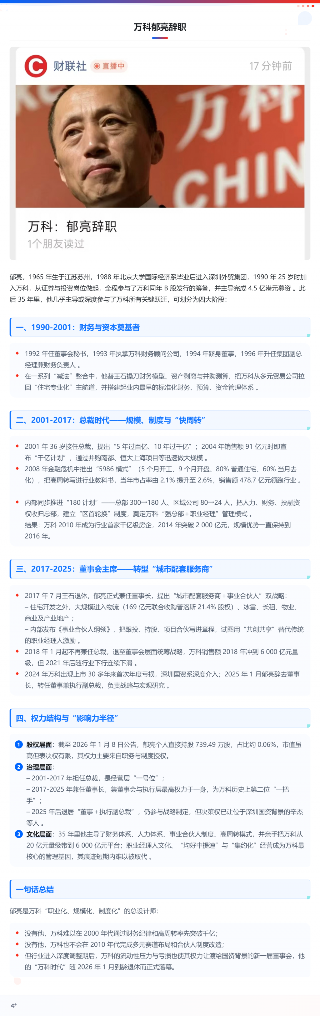 2026.1.8 万科:郁亮辞职