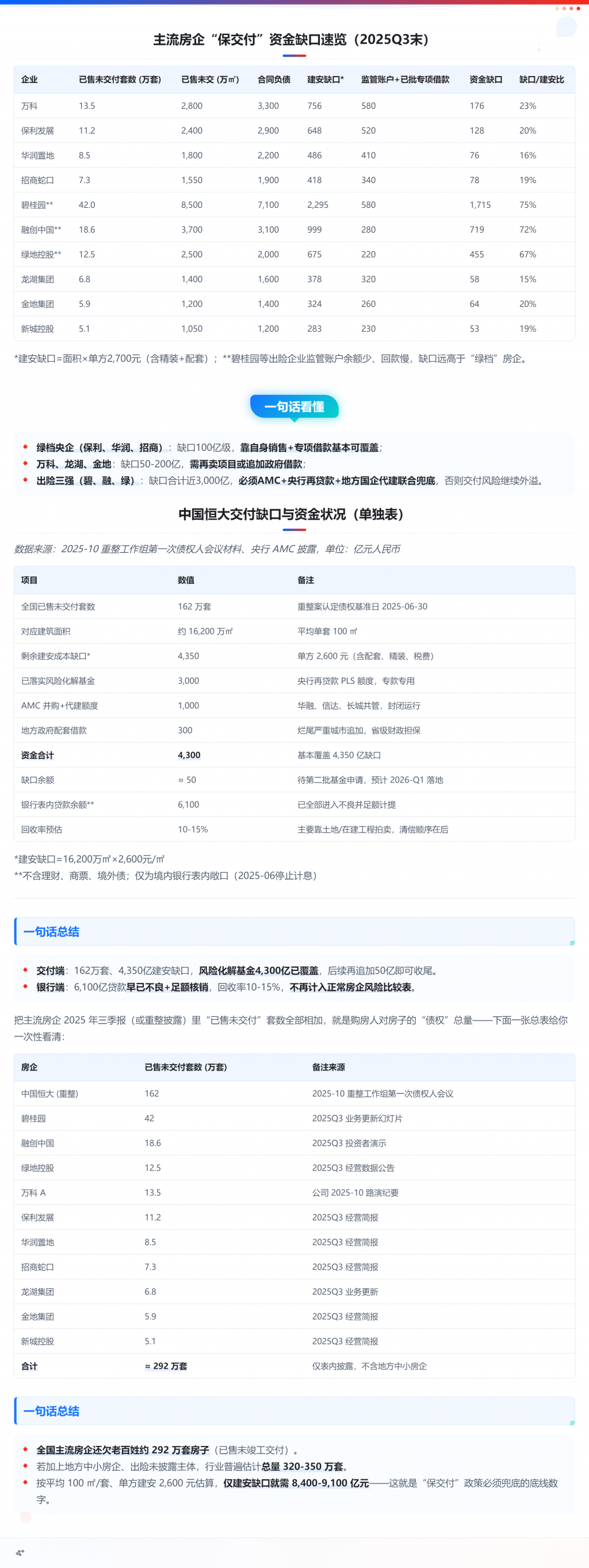 1) 库存压顶:全国商办去化周期 30 个月起步,三四线 50-70 个月,大量 2018-2020 年拿地项目已竣工但卖不动,拖累房企现金流。