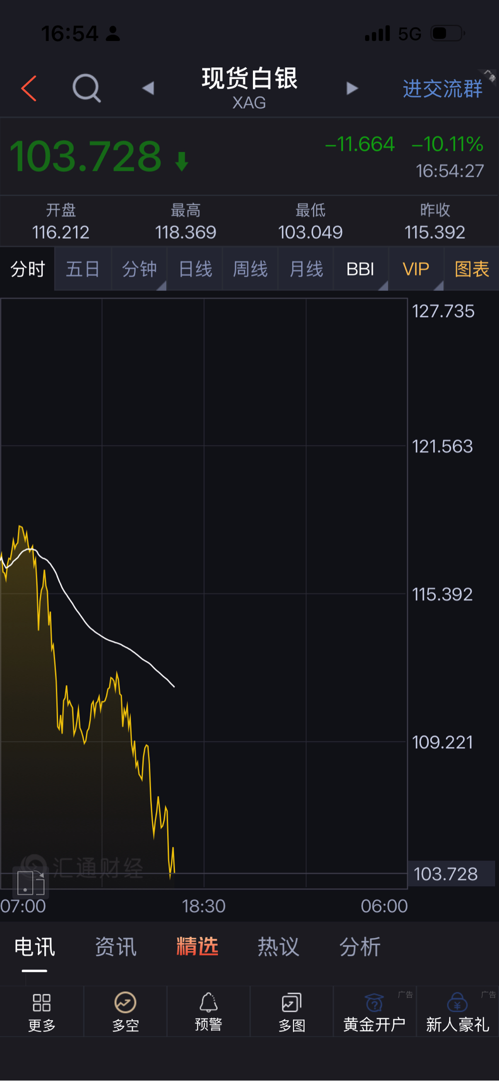 没事还来说一下金银有色。虽然没有任何证据(也不可能给大家证据),但还是觉得,从各种迹象推理,这就是个至少三个月前开始形成的巨大的阴谋(愚钝如我前几天才察觉到)。动用资金万亿美金级别、甚至与美国最高领导层有关。他们就像国家队的做法,在关键时刻和位置引爆,利用社会资金的跟风,实现一万亿影响一百万亿。虽然周五晚上偷袭看起来跌幅不小,但白银三个月涨了2倍,跌27%实际并不大的,黄金亦然。我感觉周一白天可...早盘微幅反弹,