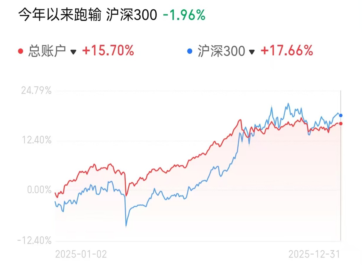 -- 部分投资ETF,主要是A500ETF和创业板ETF,外加少量煤炭ETF和稀土ETF。表现不合格,经历4月关税战和11月大跌的割肉、溃退。