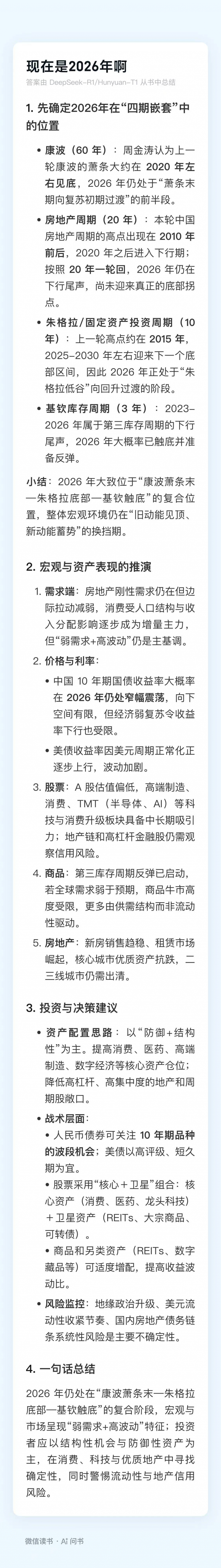 在2025年年初的大势研判中我判断2025年中国的无风险收益率会进一步下行,主要原因是因为通缩以及房地产的羸弱态势没有丝毫改变。但是结果2025年是中国无风险收益率持续上升的一年(差不多是从1.7% 升至2% ),这一点可以说是错的离谱以至于后面的汇率判断也出现了错误。可是现在站在2026年年初我仍然认为未来中国的无风险收益率会下行,还是因为刚刚说的“经济的缩”和“房地产的弱”在当下是无解难题,除非解决这俩问题,否则我觉得无风险利率很难走出上行趋势。
