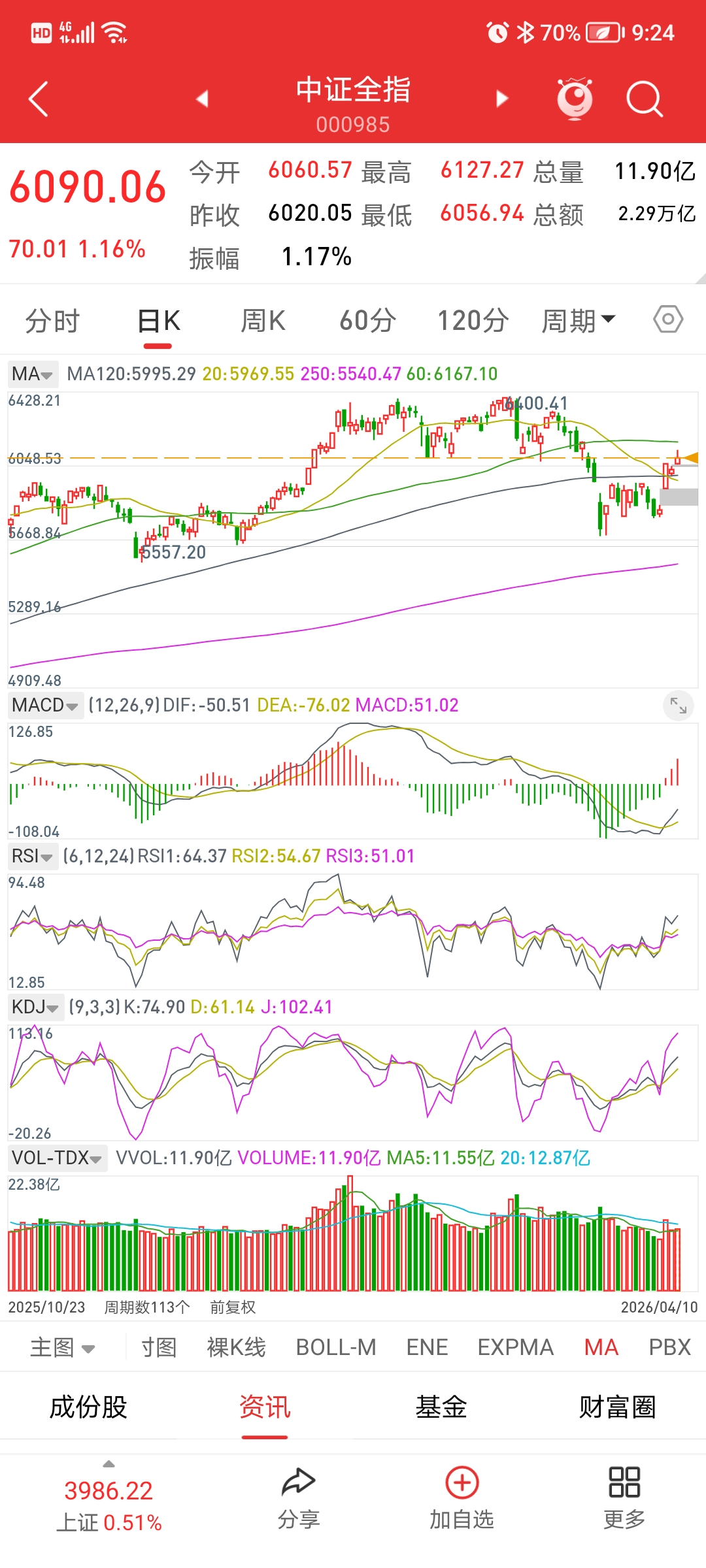 周五收盘再次来到前高点,成交量再次三万亿,但上证50 沪深300等宽基指数大量赎回,连续几天都是阴跌,这是不好的现象,值得留意。