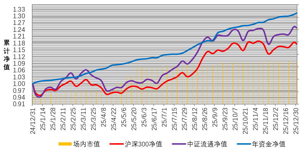 2025年全年收益31.31%,按周统计没有回撤。2025年12月31日上市的北交新股蘅东光及当天暗盘交易的璧仞科技,这两只新股的收益计入2026年,为明年的收益打个基础。