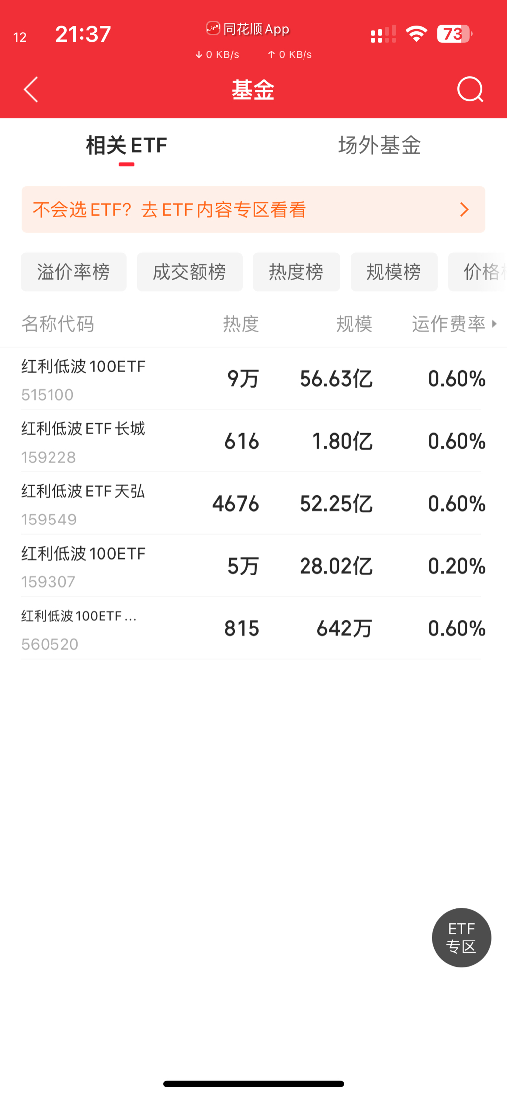 整理了一下 AI 搜到的信息| 基金简称 | 基金代码 | 管理费率 | 托管费率 | 最新规模(约) | 日均成交额(近期) ||----------|----------|-------------|----------|----------|----------|------------------|--------------------|| 景顺长城中证红利低波动100ETF | 5...博时的红利低波159307费率是0.2%,比其他几个低一些。