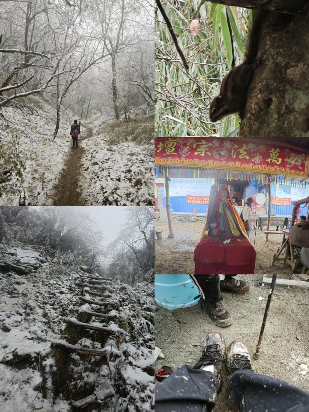 寒假到了,我终于可以带上孔曼且硕去爬山了。星期三,我们去的是户外圈子里名气很大的赵公山西线。虽然来回6公里爬升800米的难度并不太大,但考虑到现在是冰雪季节,我还是操作完开盘,10点半左右就早早出发了。我们上山走的老西线处于山的阳面,雾凇上的冰碴子不停地往头上掉,地上泥泞不堪,但有冰爪加持,我们还是较为轻松地登上了海拔2434米的山顶。山顶上的道观还是那么破旧,这可是传说中财神赵公明归隐的福地啊,我在祈福之后默默地捐款了88元,希望这里能早日修缮一新吧。