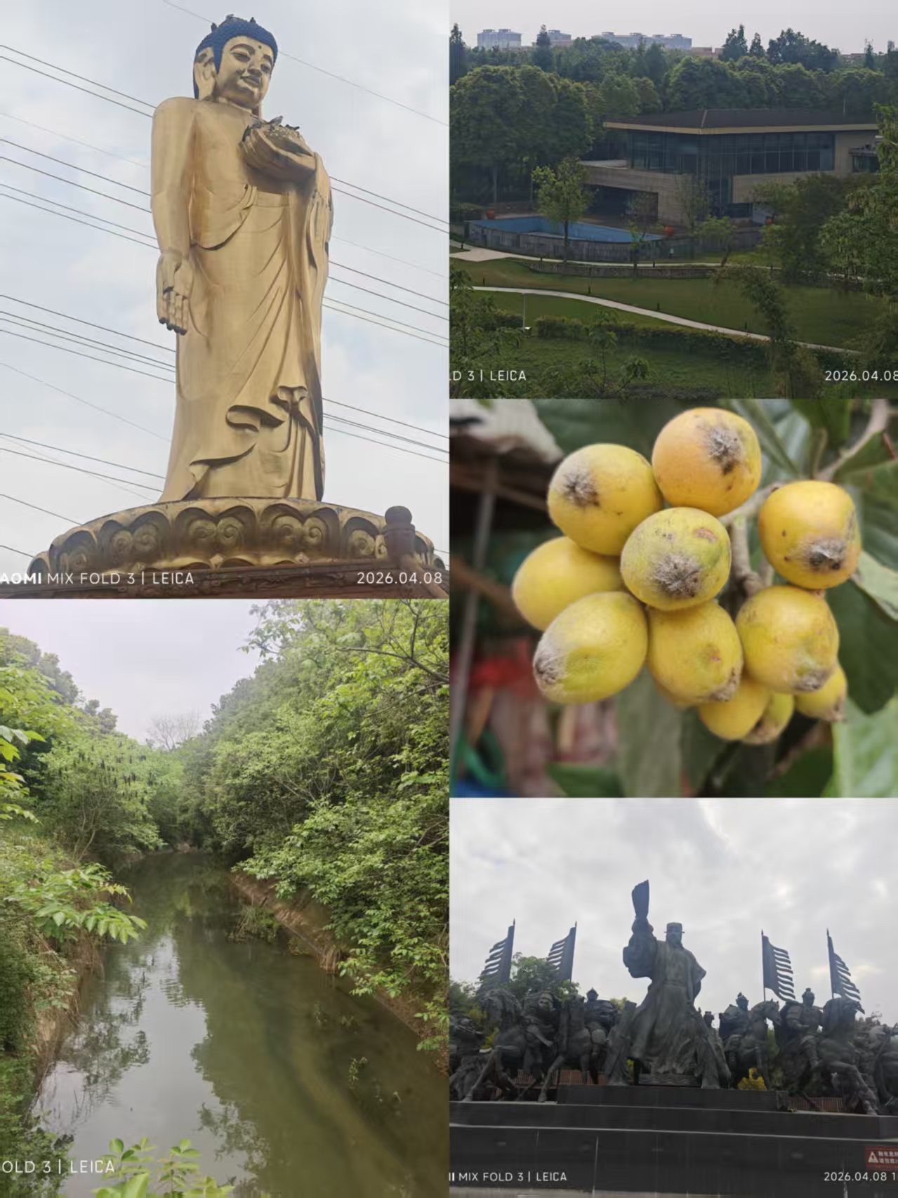 枇杷黄了,野花开了,水渠开始抽水灌溉了。从野路走8公里到了应天寺,我又从山上再走8公里转了回来。路过的花源黄水胜利三个镇应该都是比较富裕的,所以都修了不错的广场,广场上也都有着气派的雕塑。比如黄水镇的大型群雕《诸葛亮屯兵牧马山》,就还是很有点气势的。别看我最近表现一般,其实我也在股票账户里屯了千万重兵,等待着出沪深北三山,建功立业的好机会呢。