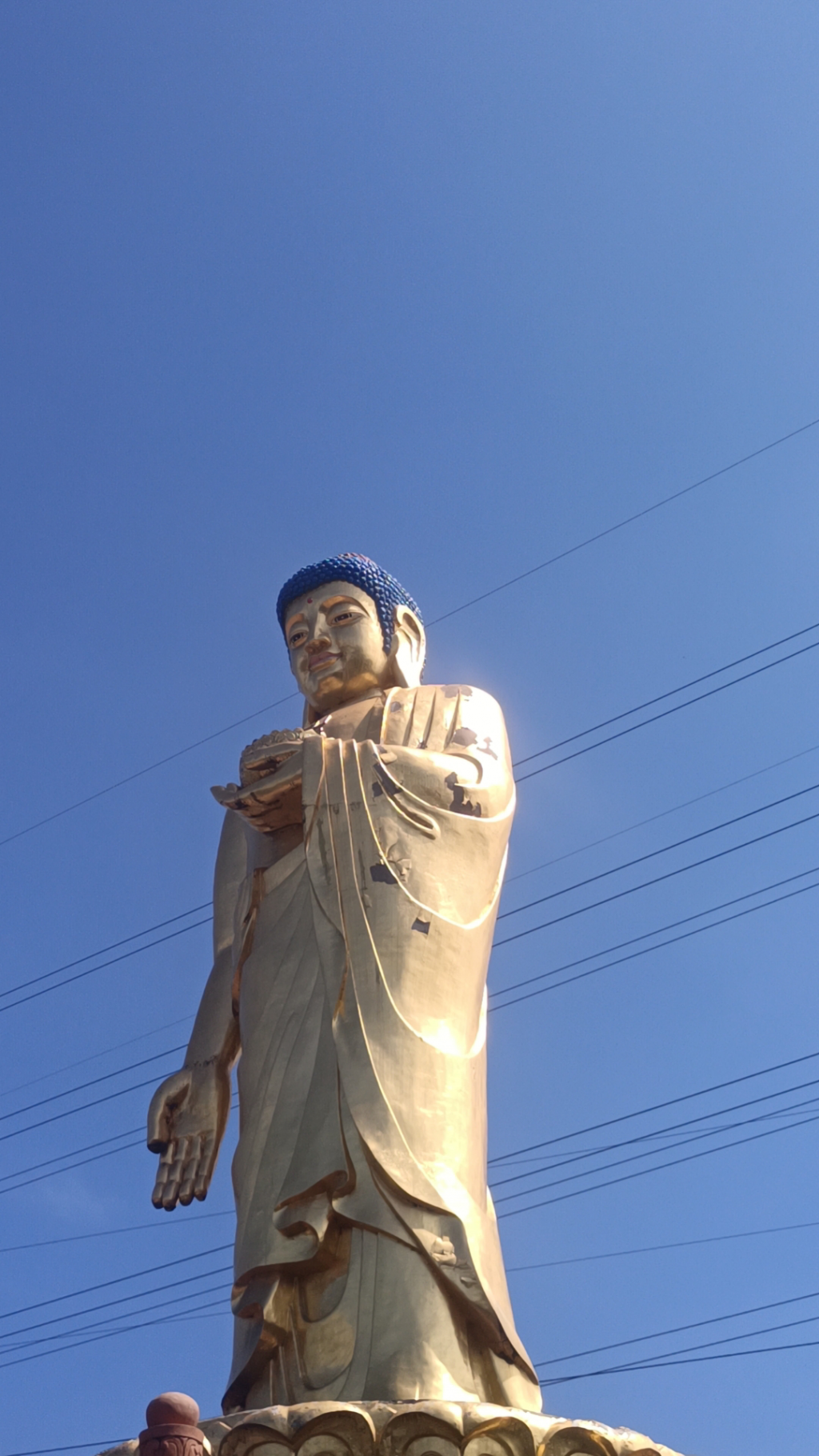 星期三下午我出门有点晚所以无法远游,便朝近郊的新津牧马山白云寺开去。登上小山顶,阿弥陀佛正手捧四只鸽子,慈祥地看着我,看来这次和平可能是真的要来了。祈福上香之后,我便沿着白河和牧山总干渠之间的野路,开始徒步了。