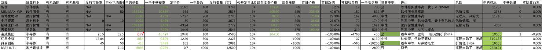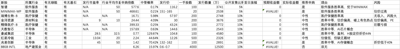 最近打新标的: