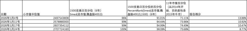 小市值策略是个众所周知的策略,可能导致拥挤度过高导致大幅的回调。另外目前市值中位数一直居高不下。
