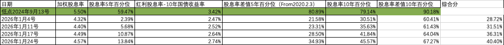 四.中证红利数据跟踪:股息率逆势上扬,把高股息低波动策略重新优化了一下,10年回测有8年超额了,夏普比例也勉强提升到1.46,感觉可以实盘跑起来了。