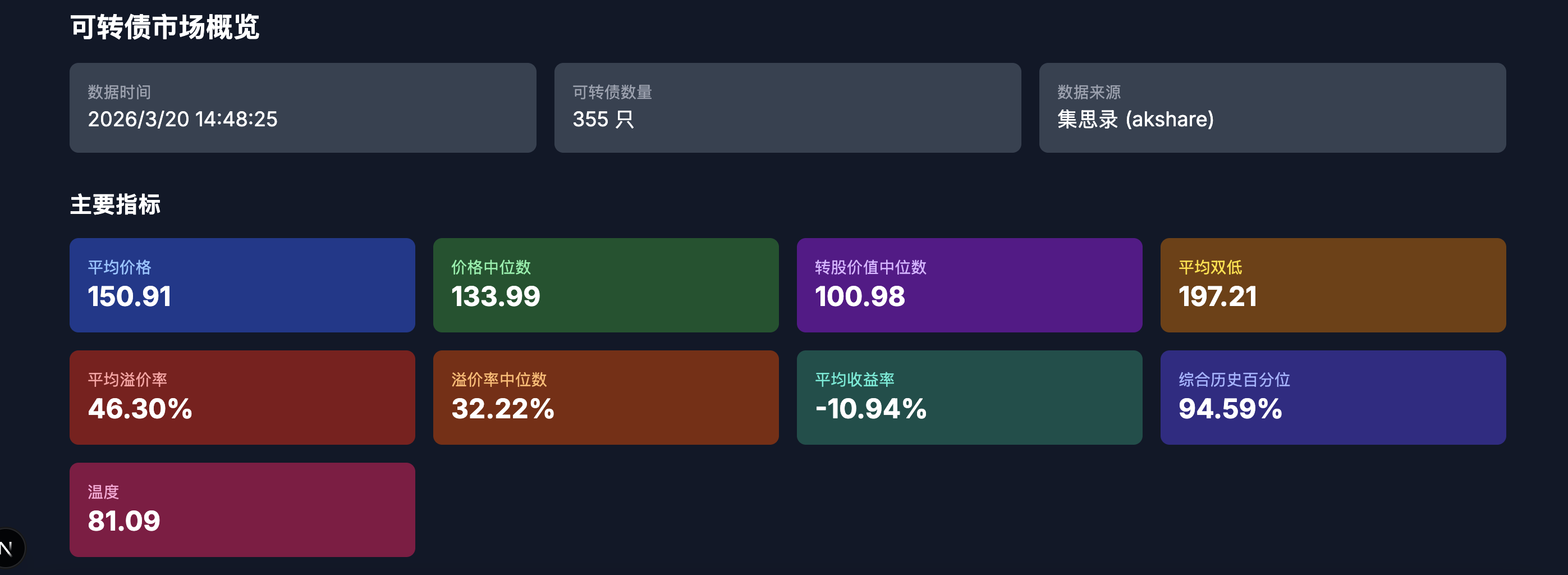 二. 可转债数据跟踪:历史综合百分位在89%,本周养的小龙虾出问题了,还是采用手工计算的版本来。比上周88%上涨了一些。
