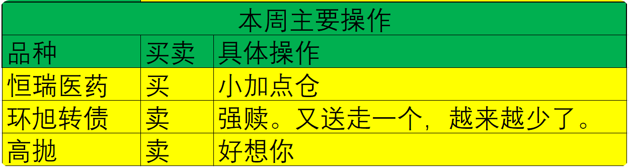本周的操作不多,基本就进行了一些高抛低吸,仓位正在慢慢下降中。