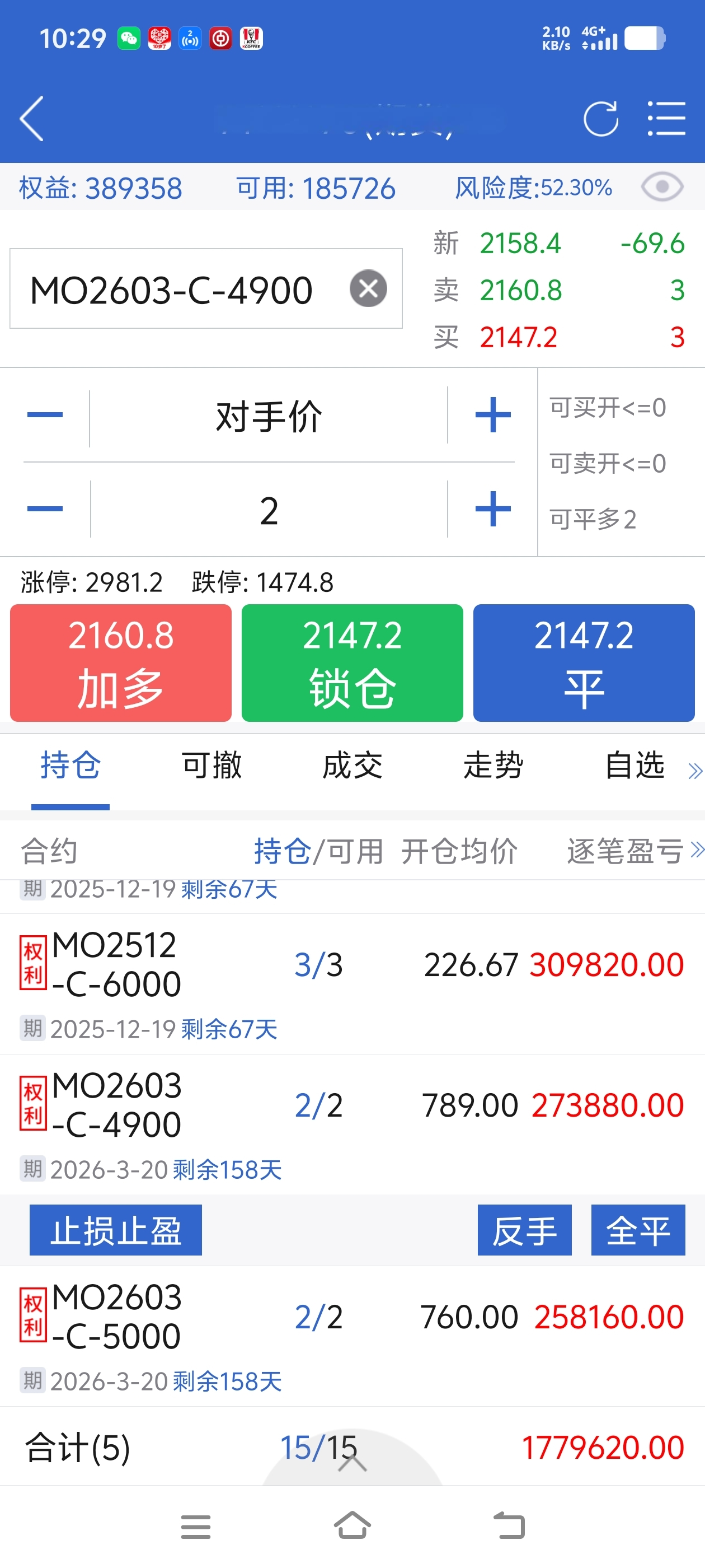 接下来尝试进行ETF期权(主要是沪深300ETF)的认购牛差期权、末日期权以及备兑交易,随着300ETF的暴力下跌,以亏损15-20W收场。