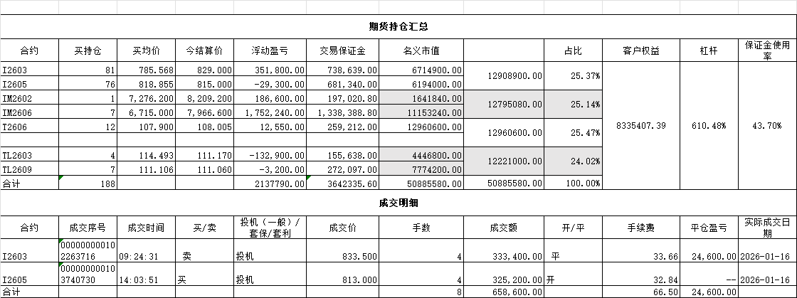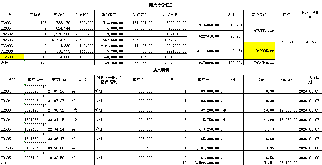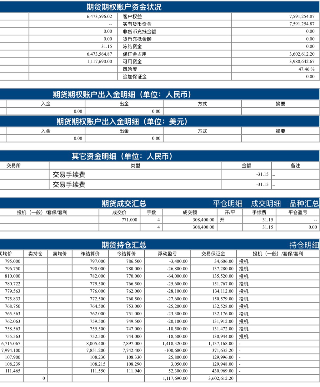 结算后,市值7426785.42,比昨天多了20+,今年新高,保证金使用率今年首次低于50%。