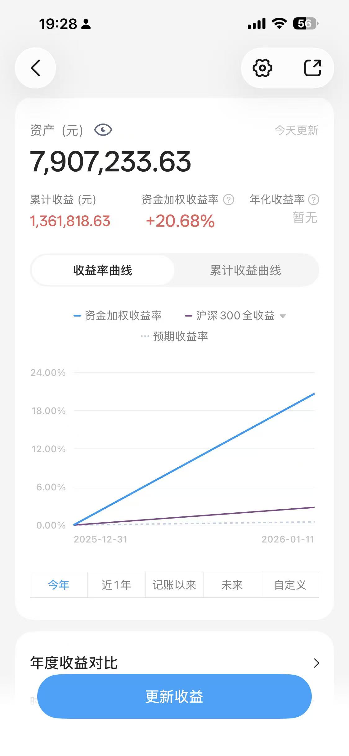 我现在的收益算方式就是把每天结算后的账户权益输入有知有行APP,再由APP按资金加权收益法计算。该方法省事。但就是不知道收益里面,贴水贡献多少、指数上涨贡献多少。