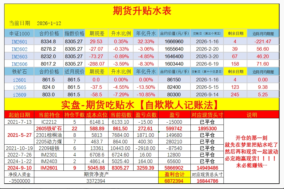 正如期货市场一句经典格言:"趋势是你的朋友,但贴水是你的忠实伙伴。"在2026年的投资旅程中,让我们遵循既定计划,以平静的心态面对市场波动,静待贴水收益如约而至。