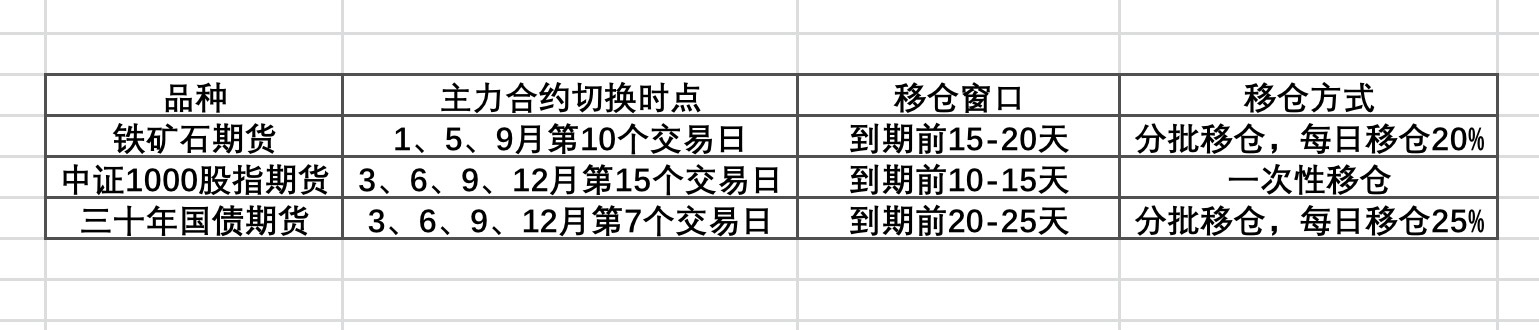 吃贴水策略的核心环节在于移仓操作,具体安排如下: