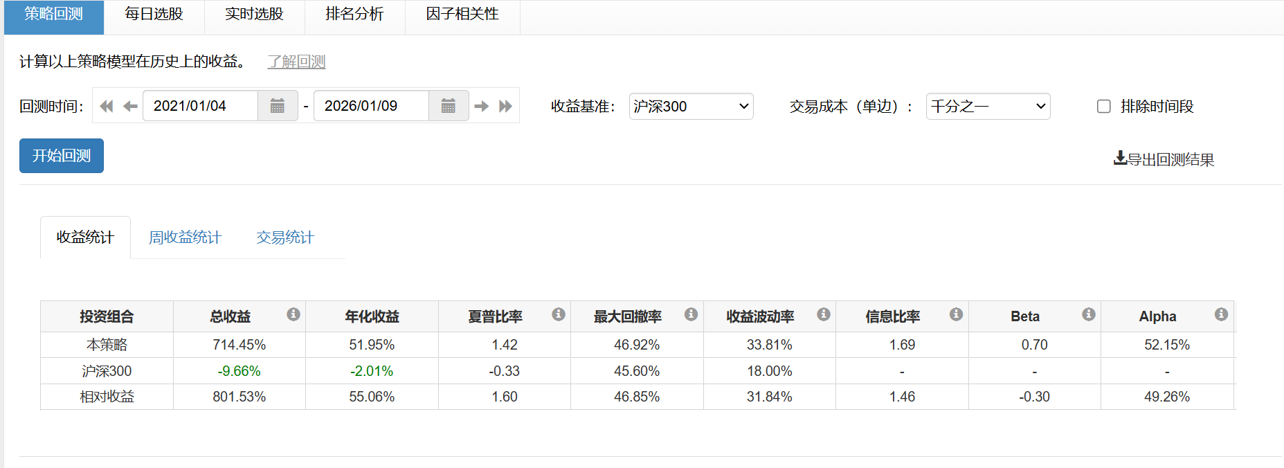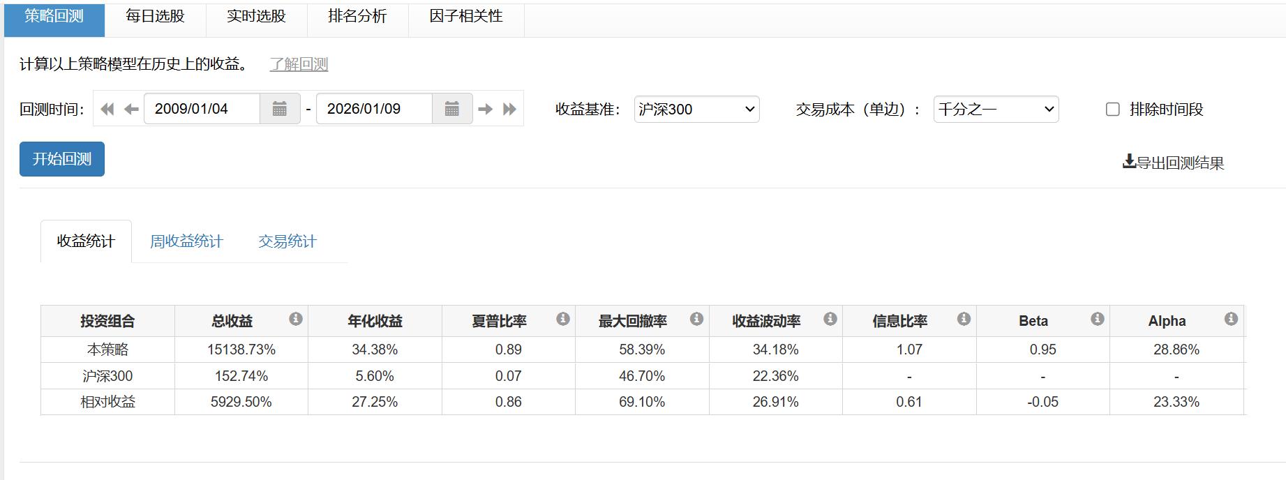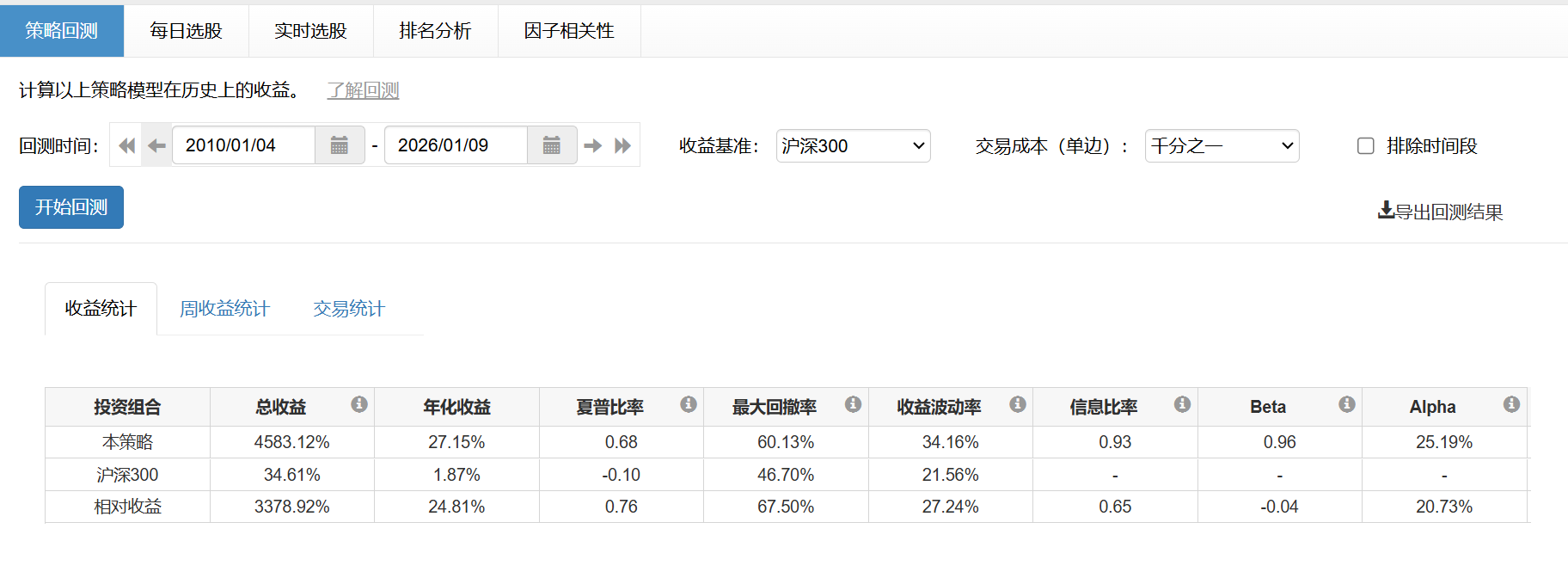 如果我们把2009年时间切换为2010年的时间,最后回测结果如下:
