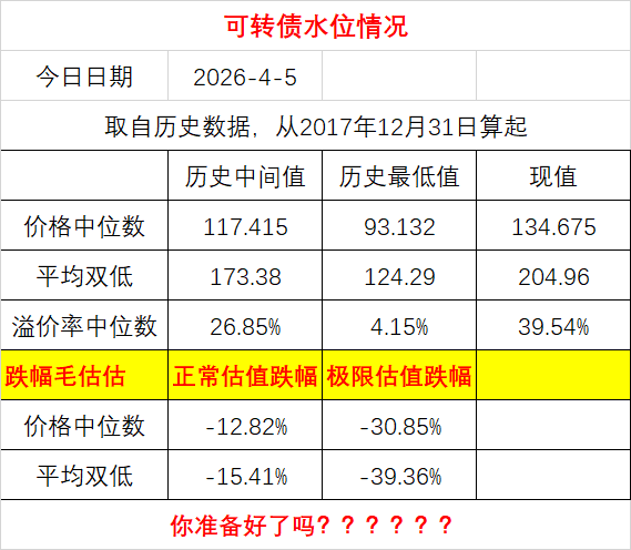 本周末可转债水位情况: