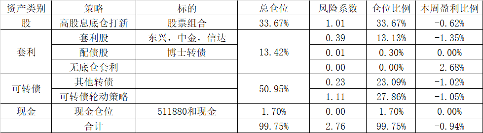 本周末持仓情况如下: