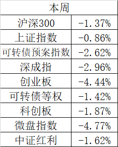 本周各指数表现如下: