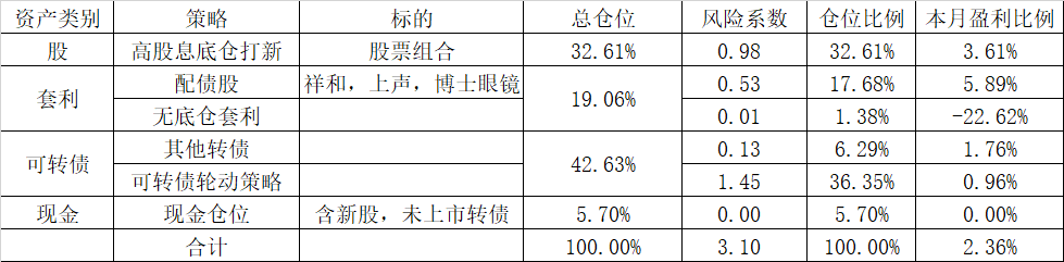 C.配债股+债策略:本月亏损最大来源,占比本月亏损额度的63.8%,亏损总资金的2.75%;