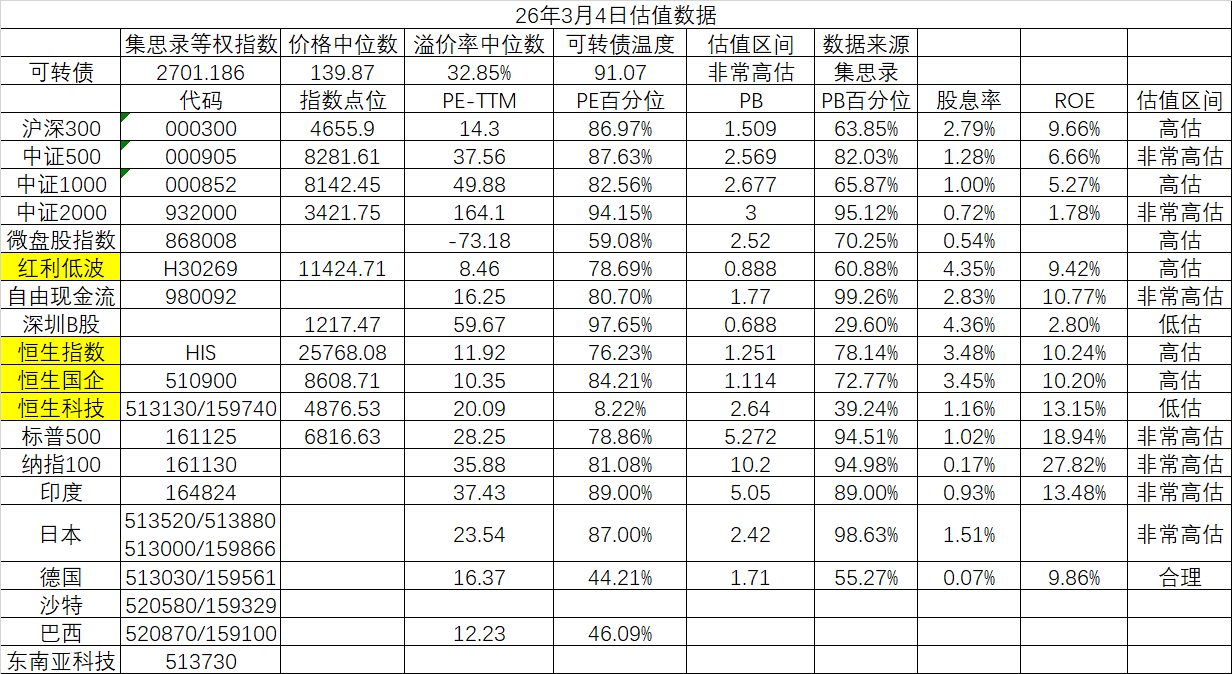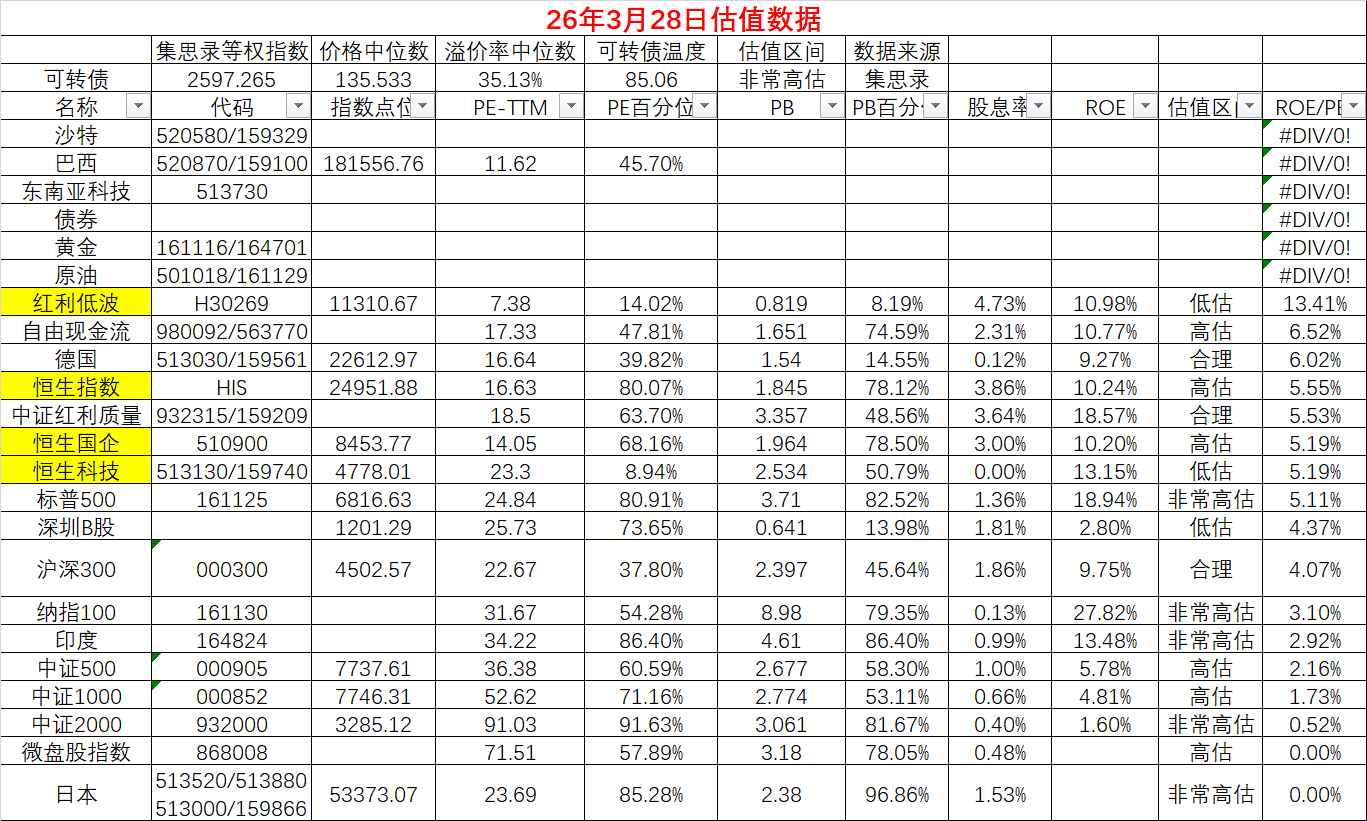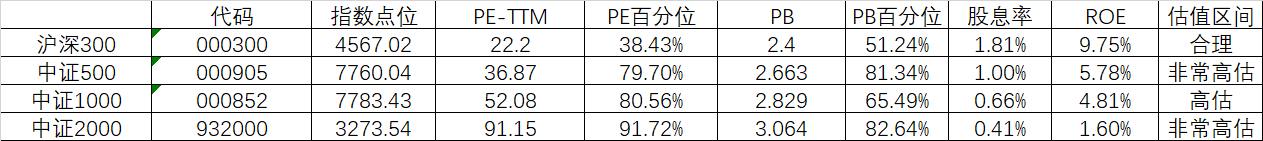 本周末各指数估值情况: