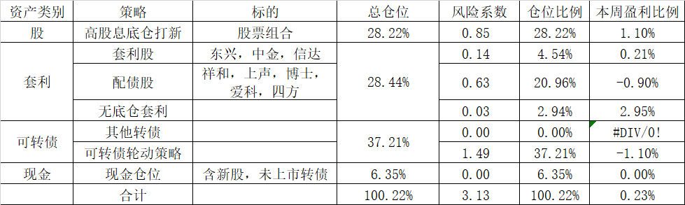 账户:+0.13%,本周收益-0.16%(如果撇除海天配债影响,实际盈利0.35%)。