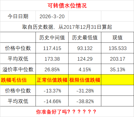 本周末可转债估值水位: