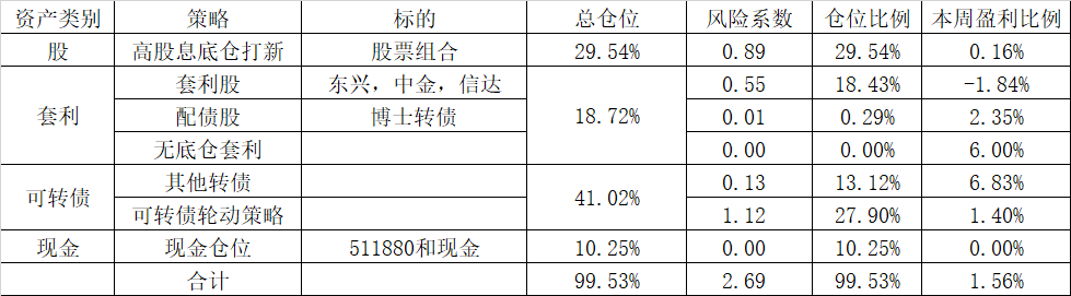 周末持仓及持仓本周表现: