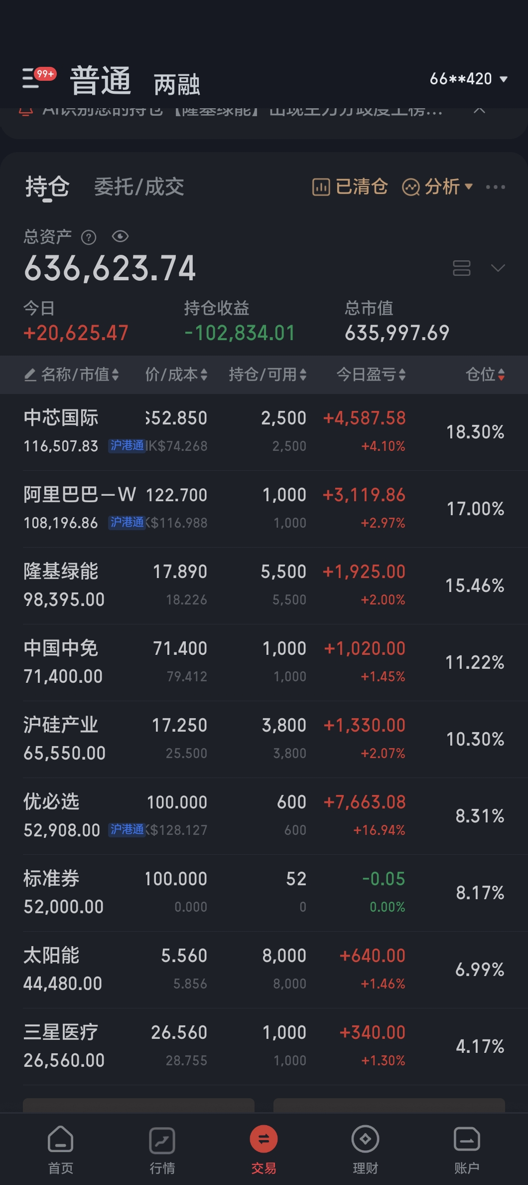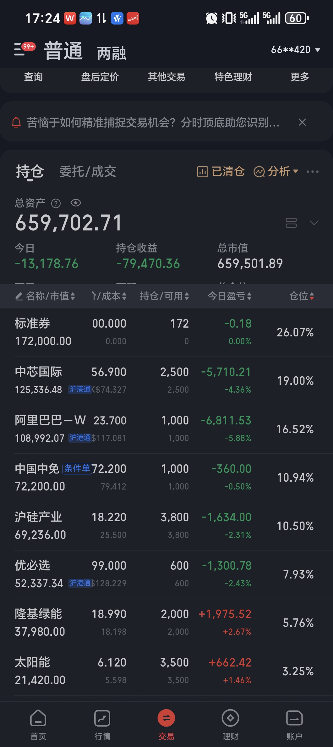 整体仓位依旧过高,近期中东局势造成油价大涨,推升通胀预期,从而压制美联储后续降息动作,科技股整体承压,我持仓里仓位较重的中芯和阿里也算受到明显恒科影响,账户近期回撤明显。