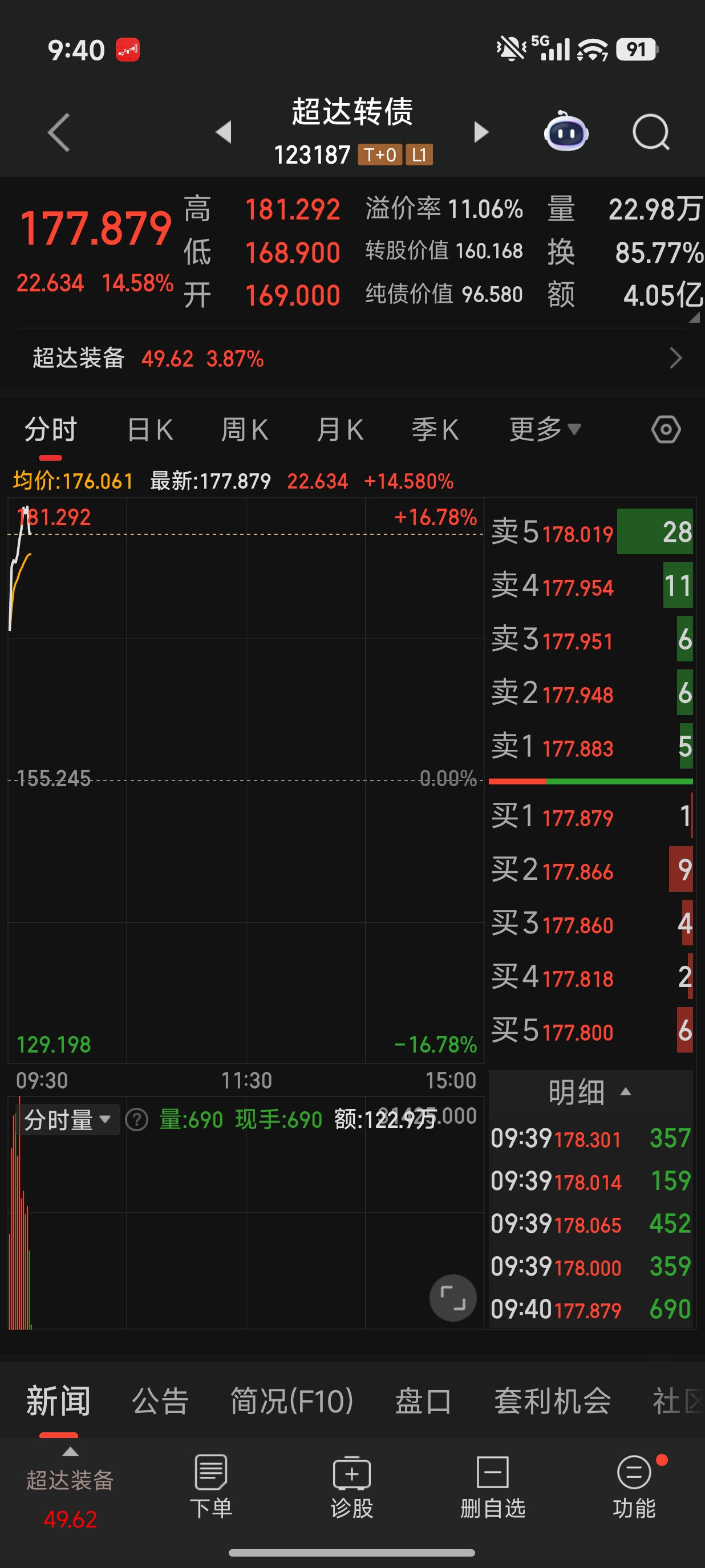 我的重仓转债超达转债爆发了,赚了点钱。