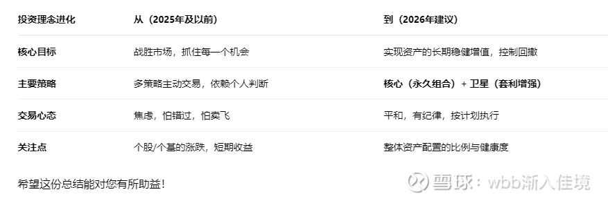 总结:您的2025年看似“渐入佳境”,实则是“拨云见日”。最大的收获不是26%的收益率,而是找到了通往更高级投资境界的路标——从“追逐热点的交易员”向“管理资产的配置者”进化。2026年,请坚定地走下去。