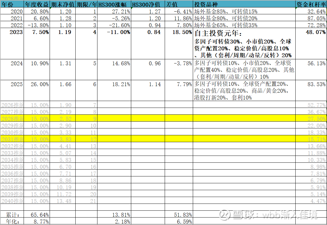 实现表格中精确的推演数字(年化15%,净值翻13倍)的概率极低。但如果您能切实执行2026年总结中的新理念——以永久组合为“盾”,以套利能力为“矛”,并辅以严格的纪律和良好的心态——您有非常大的概率在2040年获得一份令人满意、很可能超越市场平均水平和大多数投资者的投资成果,实现财富的稳健增长。这才是真正意义上的“渐入佳境”。