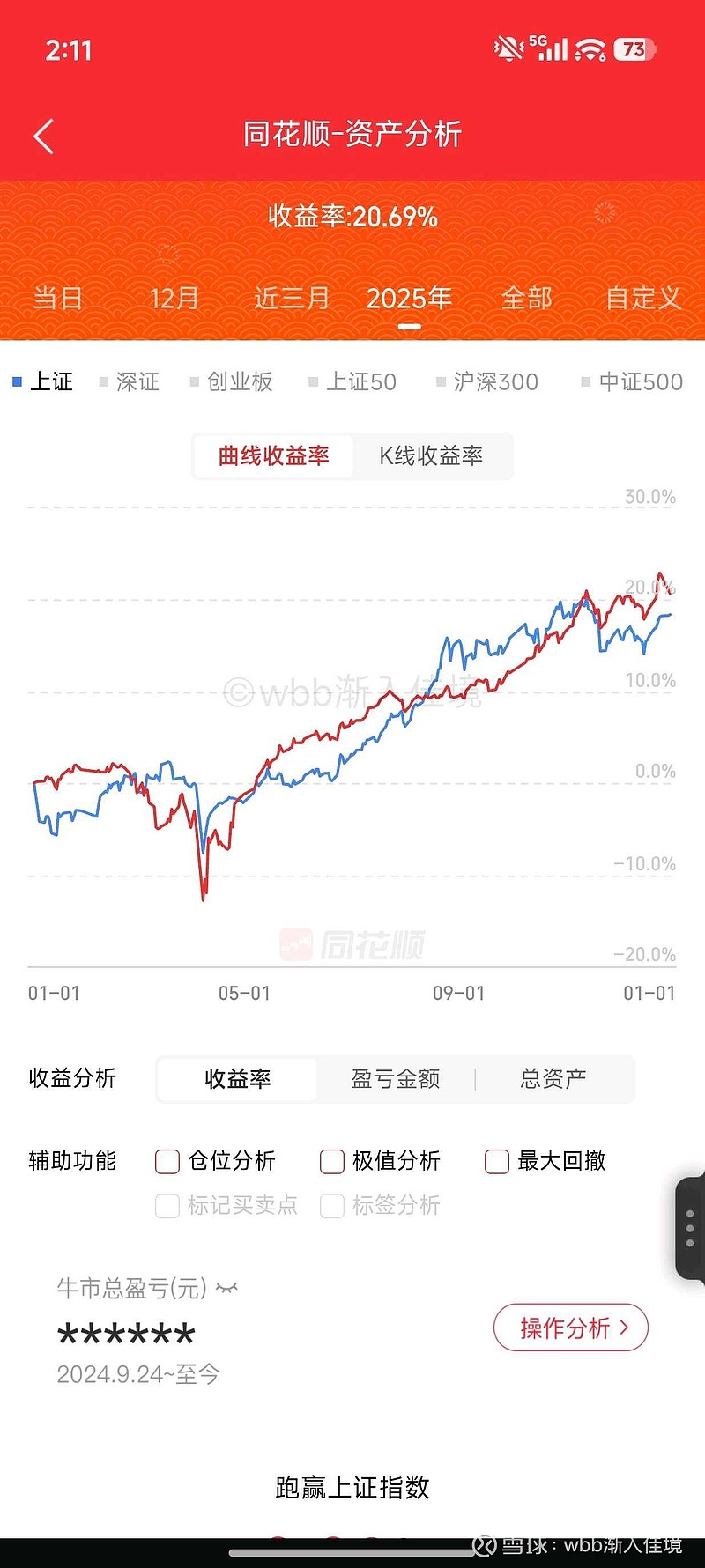 股市持续新高,2025-11-11首次达到收益率20%。