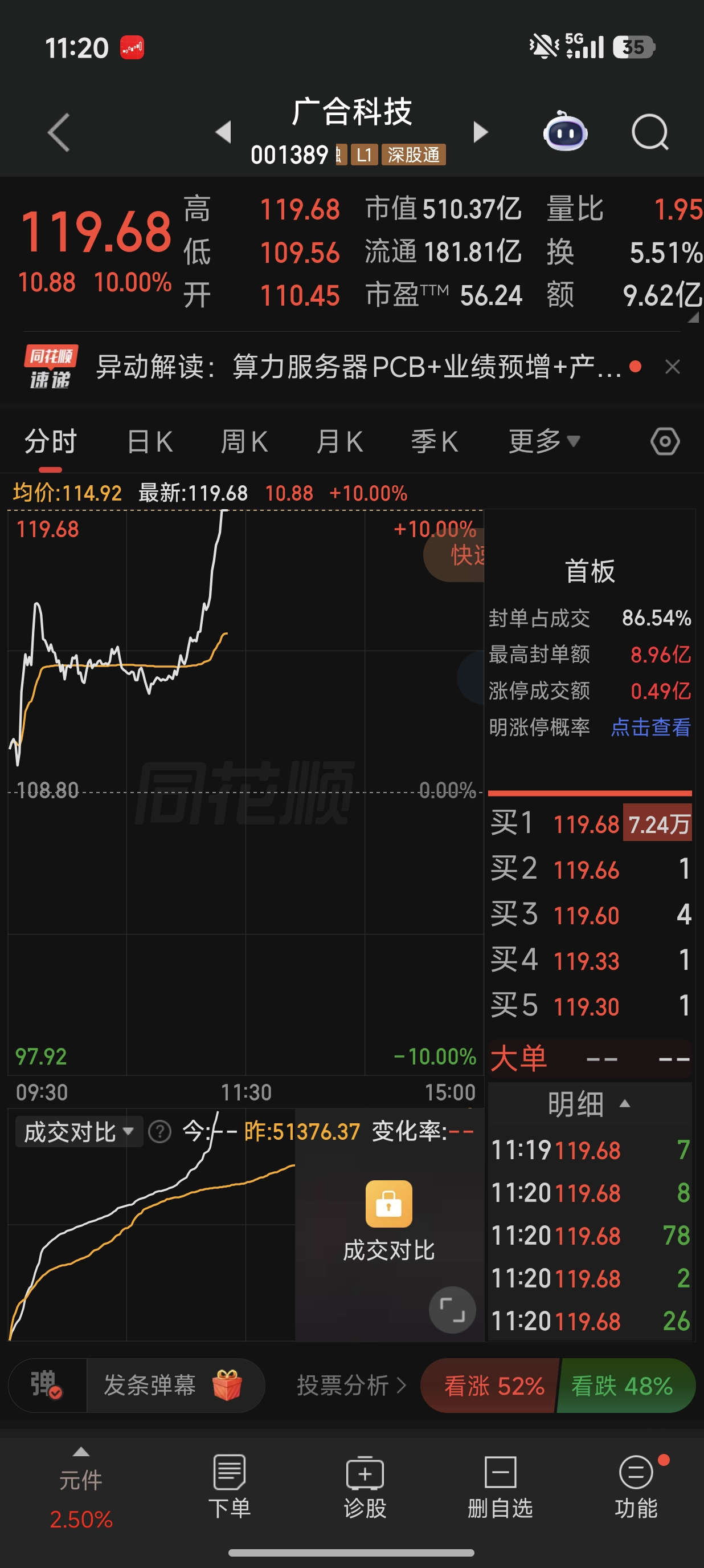 参与交大昂立的要约套利,赚了点钱,没有卖在涨停板,好可惜。