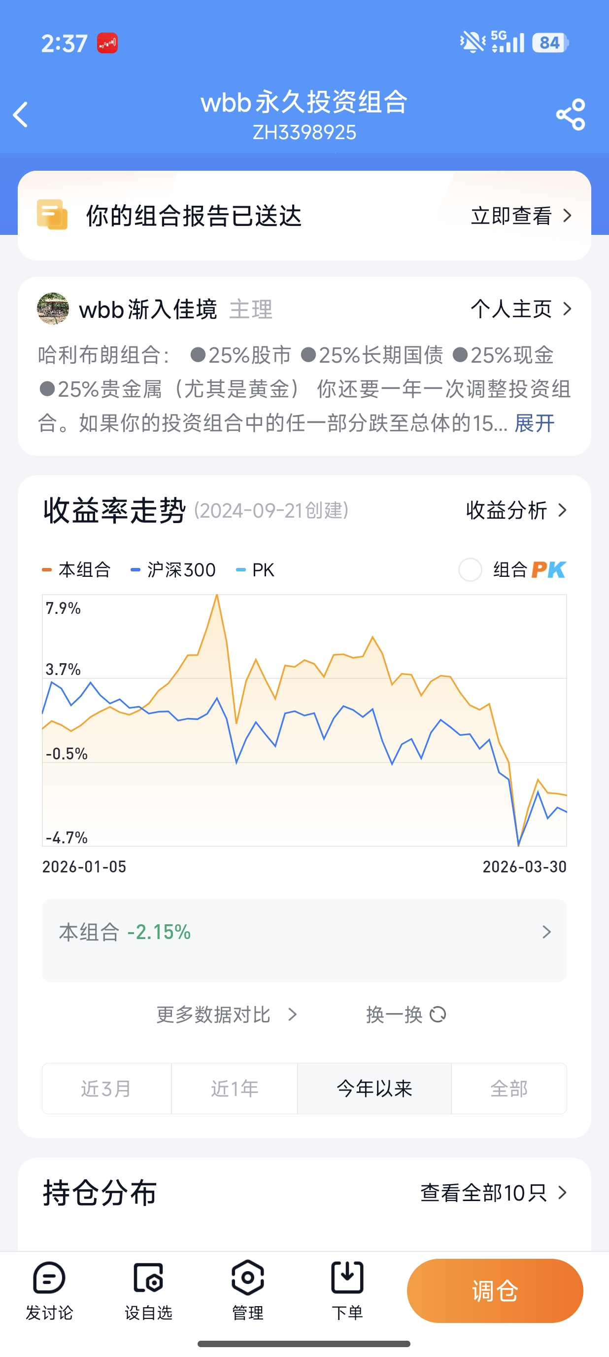 资产配置理念的升华:最大的收获是认识到了“折腾出花来也跑不赢哈利布朗永久组合”。这是一个关键的理念转变,从追求“战胜市场”的阿尔法,转向追求“稳健平衡”的贝塔,这是投资心态成熟的标志。