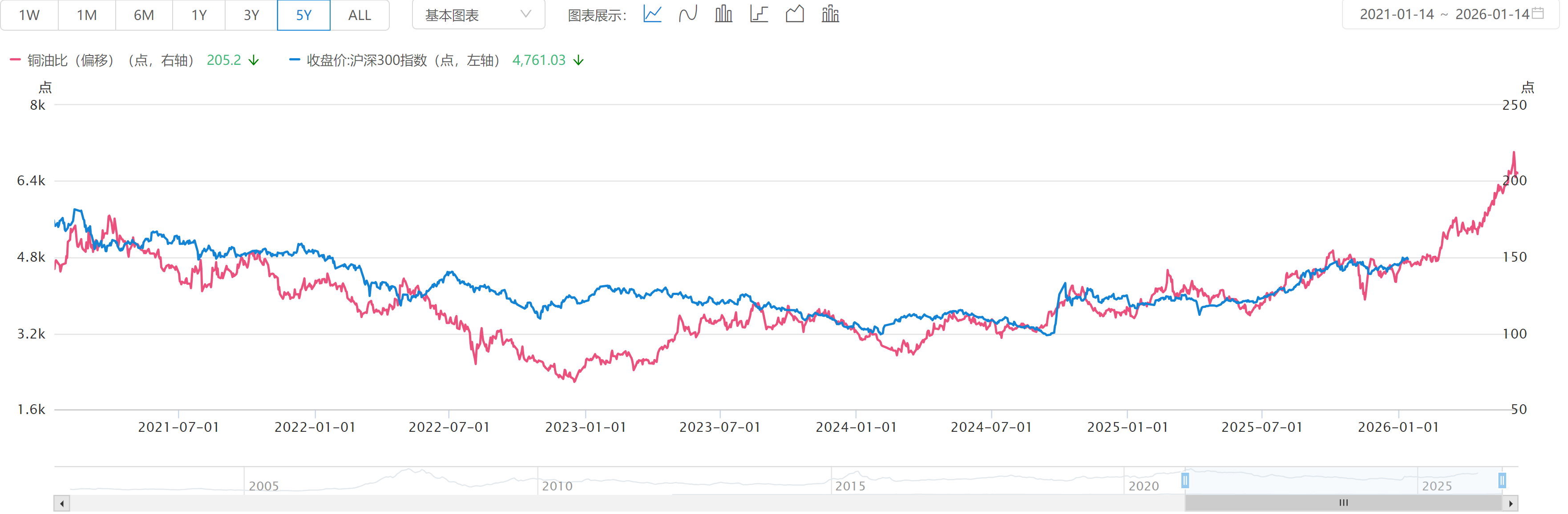 从领先指标铜油比来看,沪深300、中证1000这一类宽基指数,还有的涨。