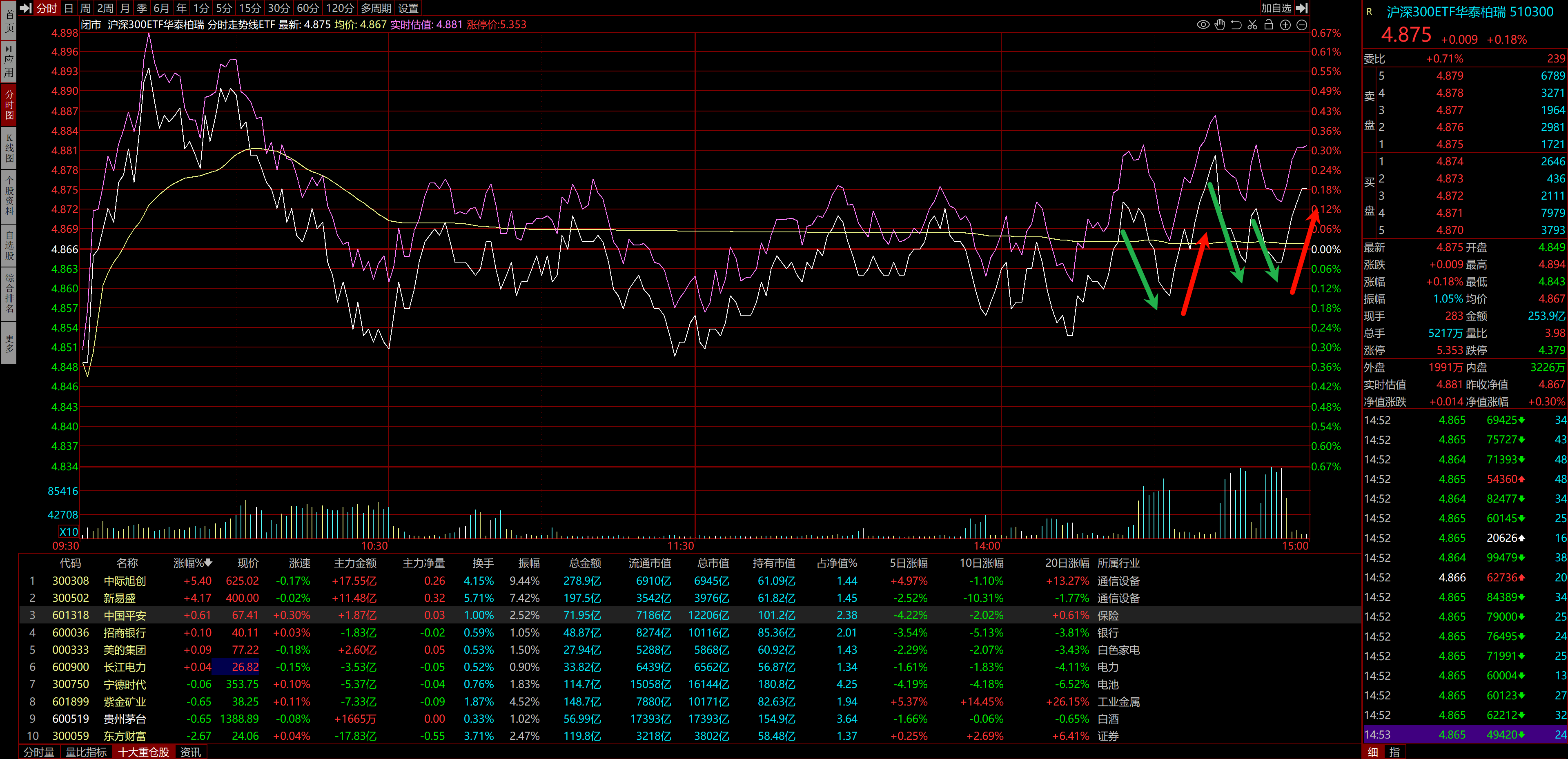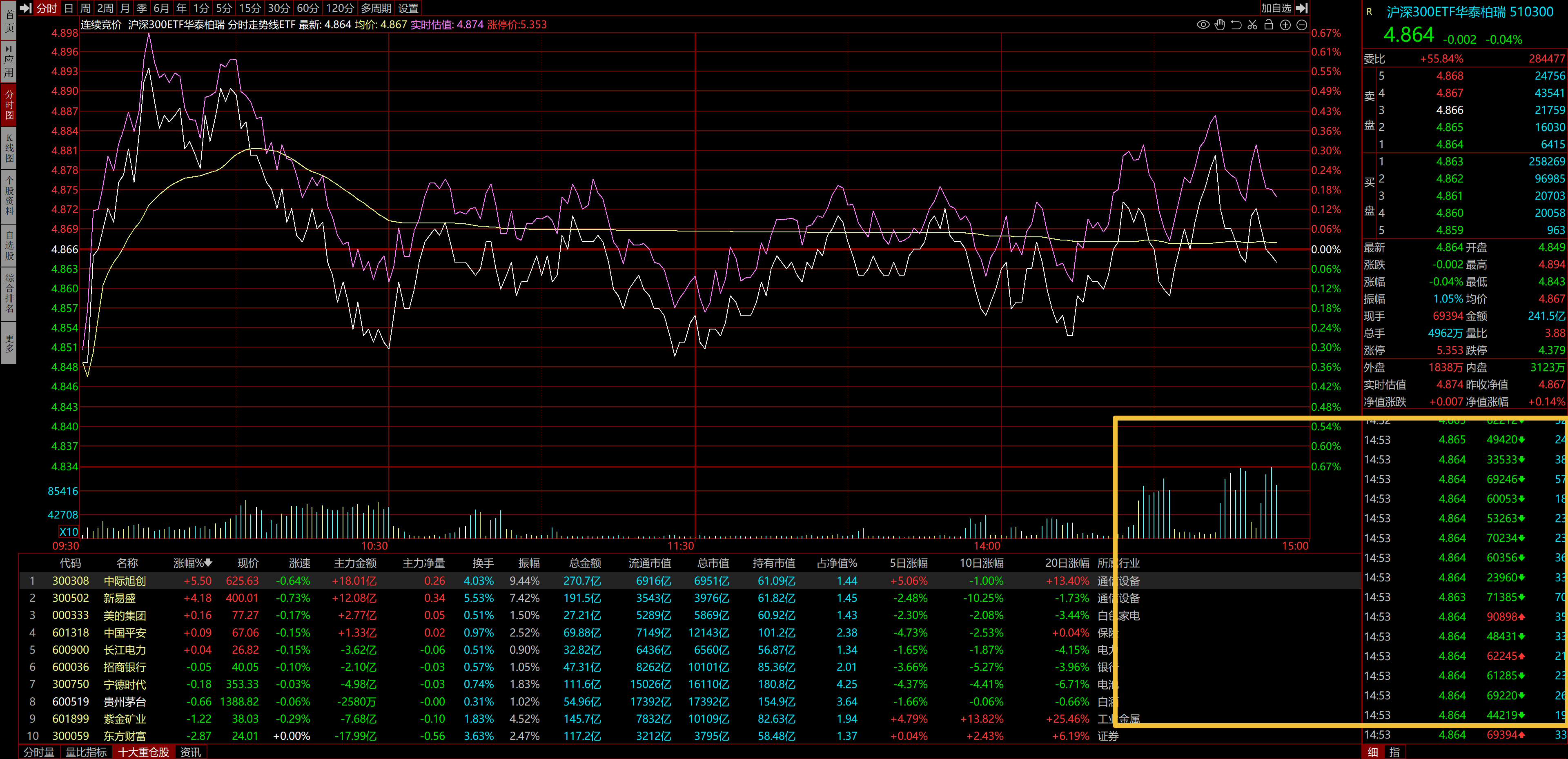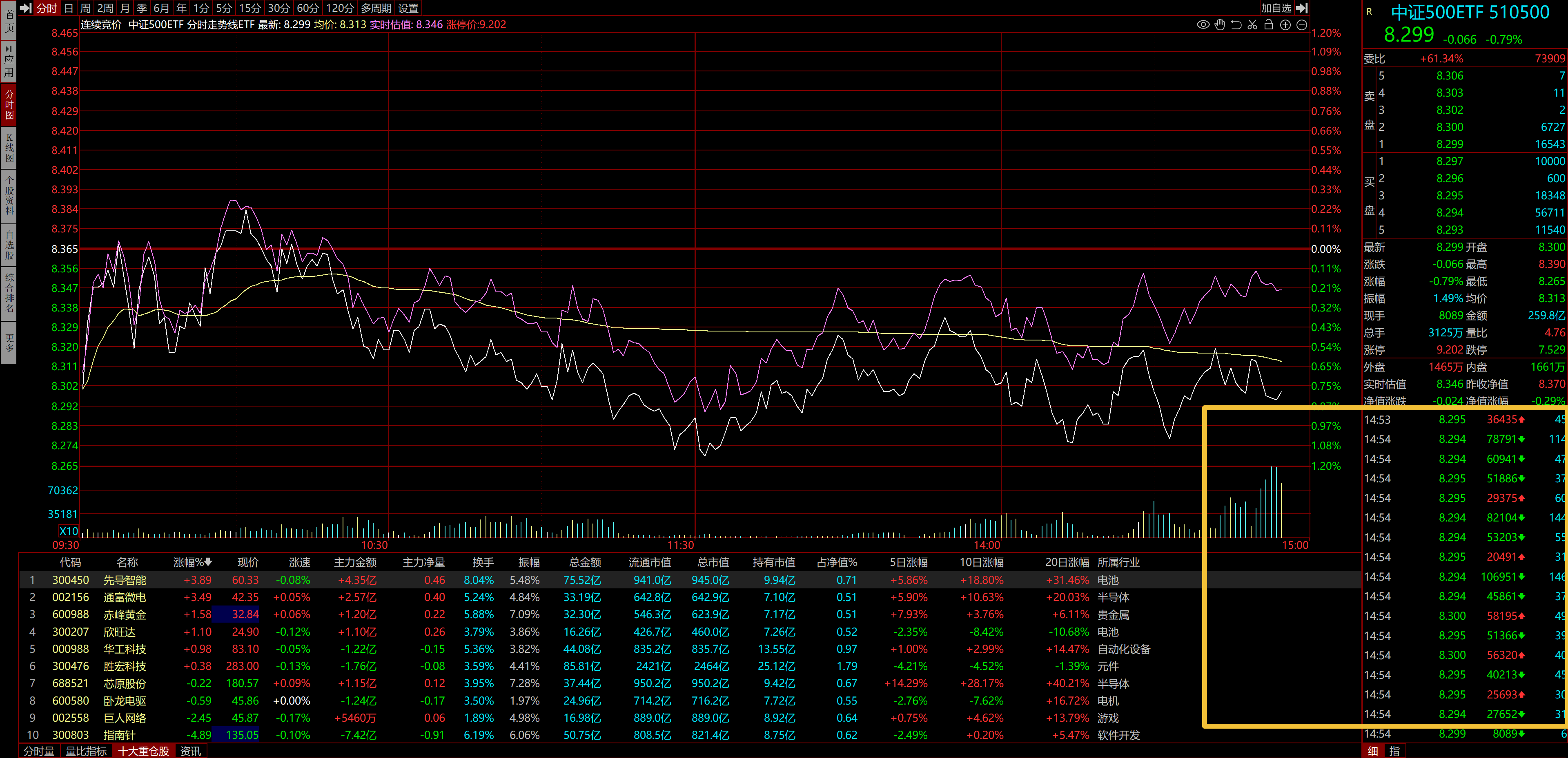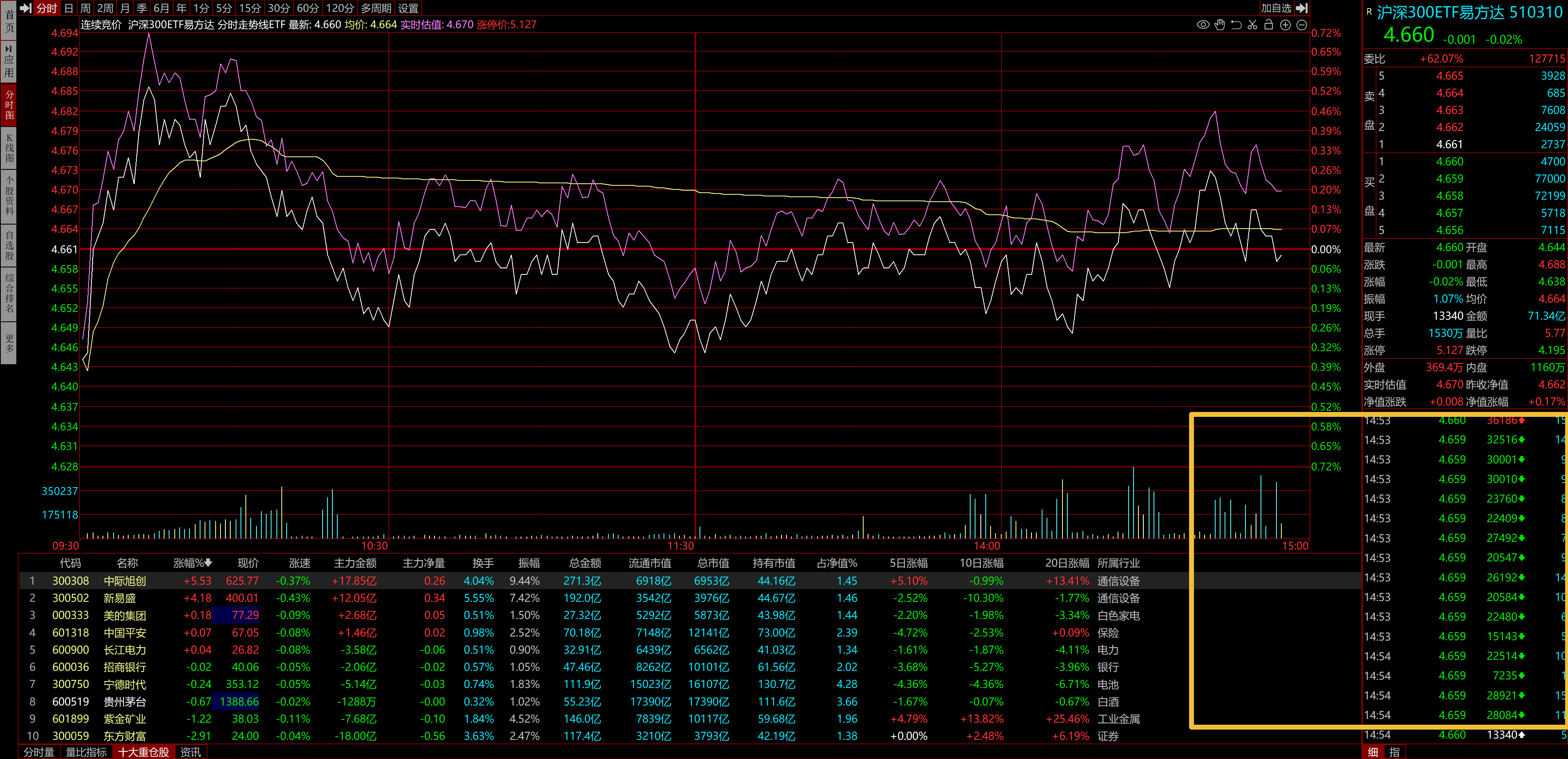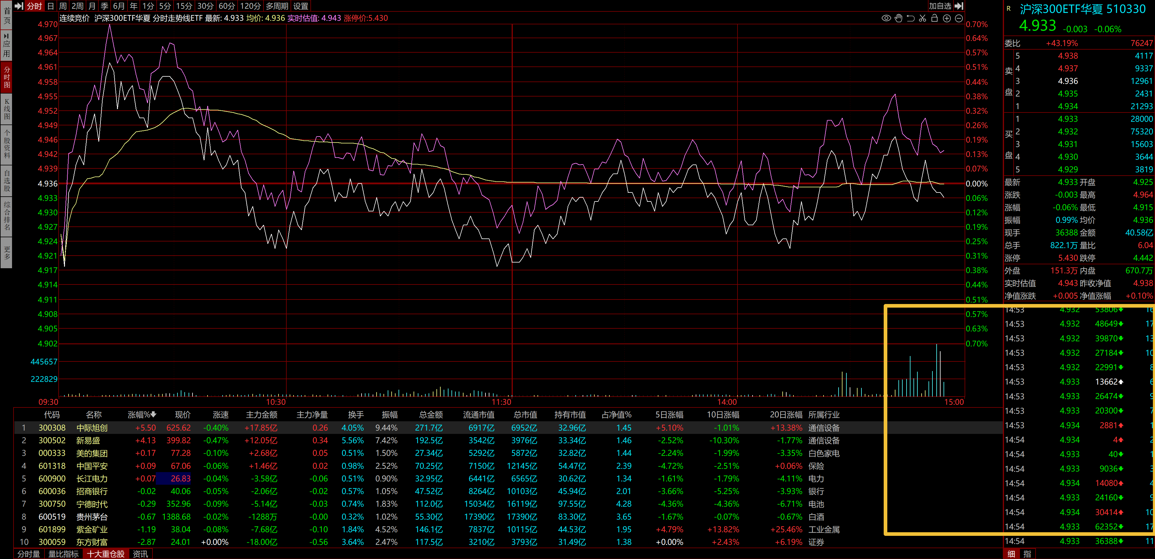 尾盘300和500ETF 国J队卖出,这种每分钟成交量都差不多的整齐卖盘,应该只能是国J队。
