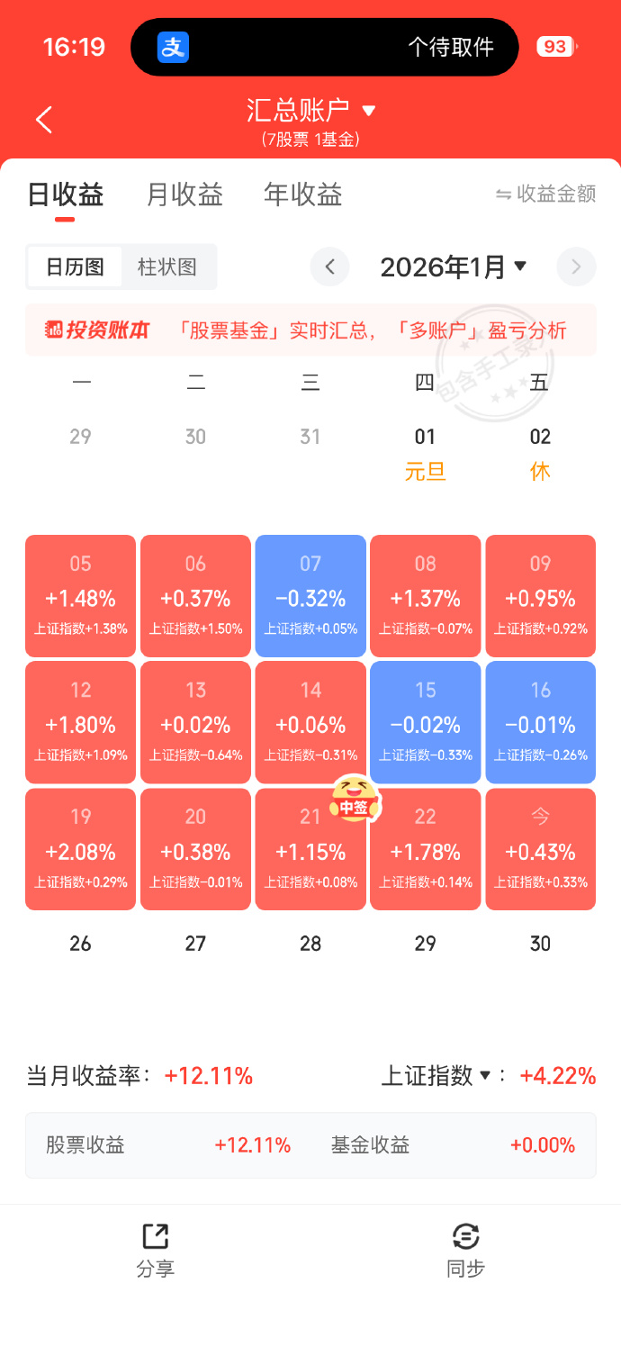 1月还没结束,已经 13.6%了,而且账户几乎每天都是红的。