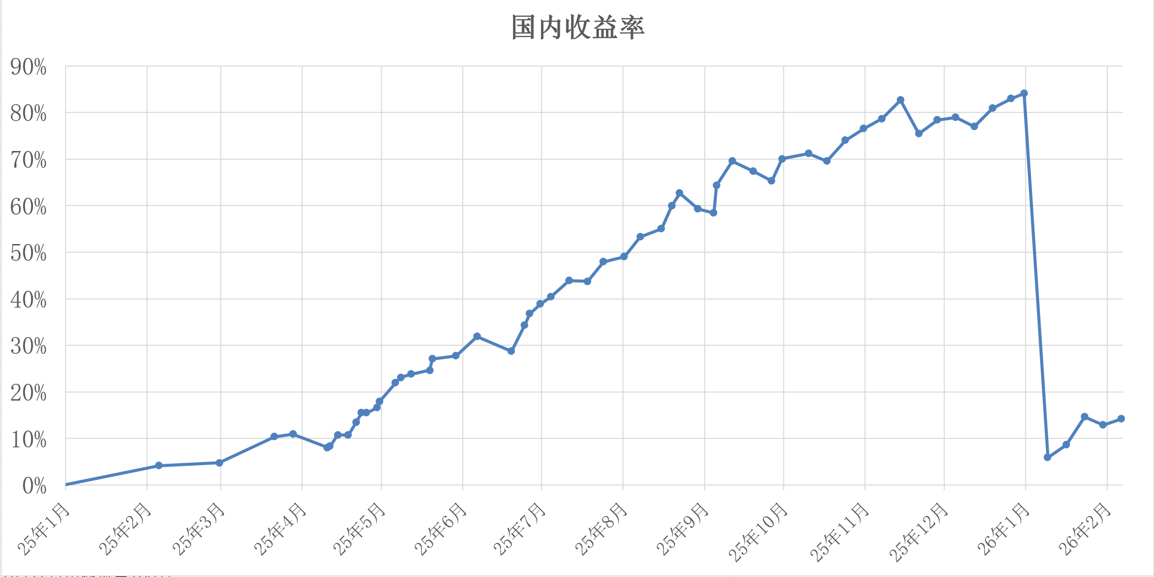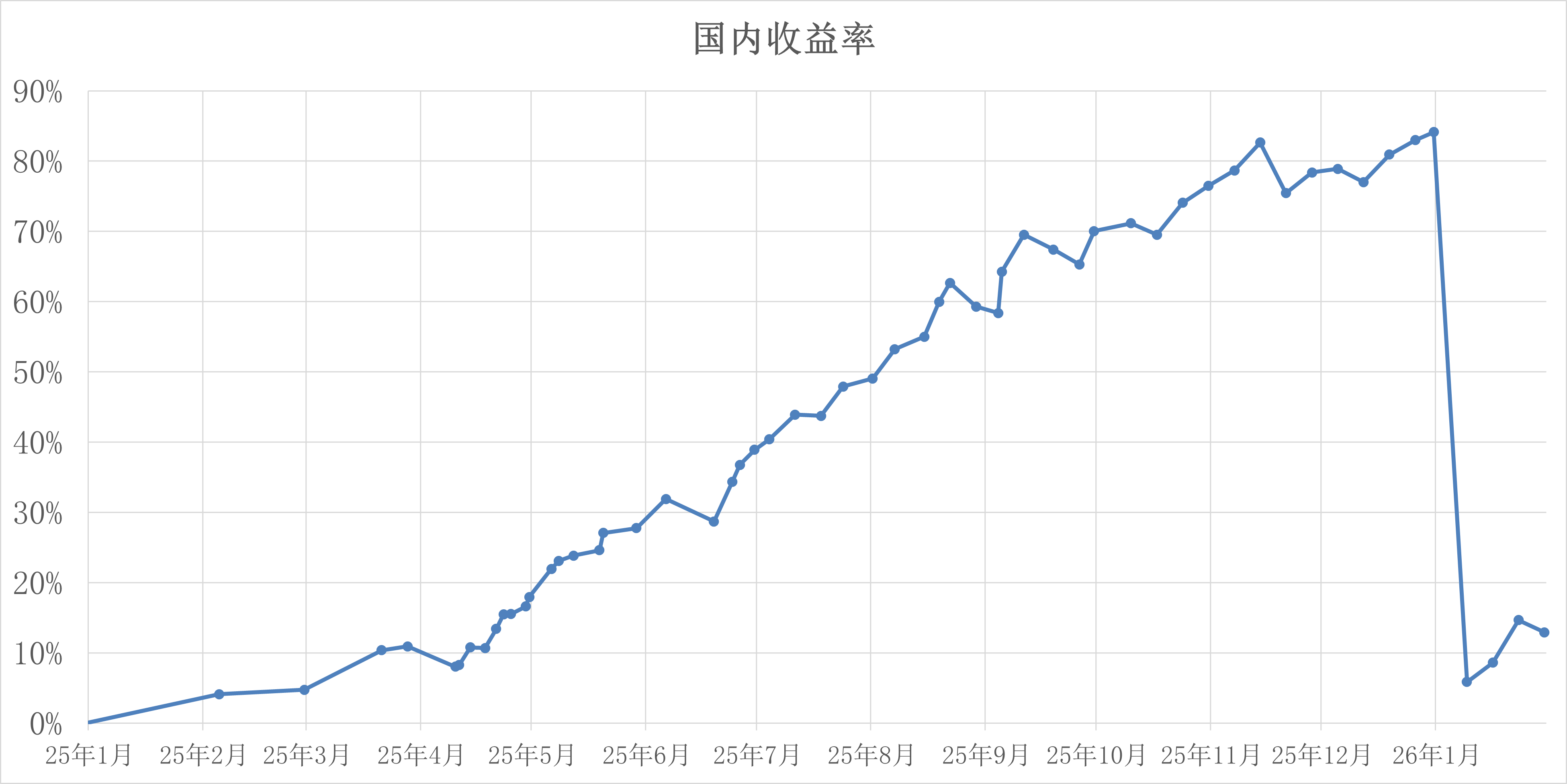 国内收益率,今年的从零开始重新算了,1月的行情相当炸裂,赚麻了都。