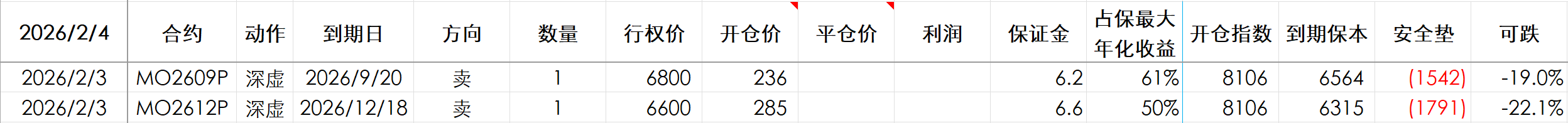 这也导致MO的深虚认沽,时间价值也相当大,比如现在7600点,6600点的深虚认沽,时间价值达到40点/月。