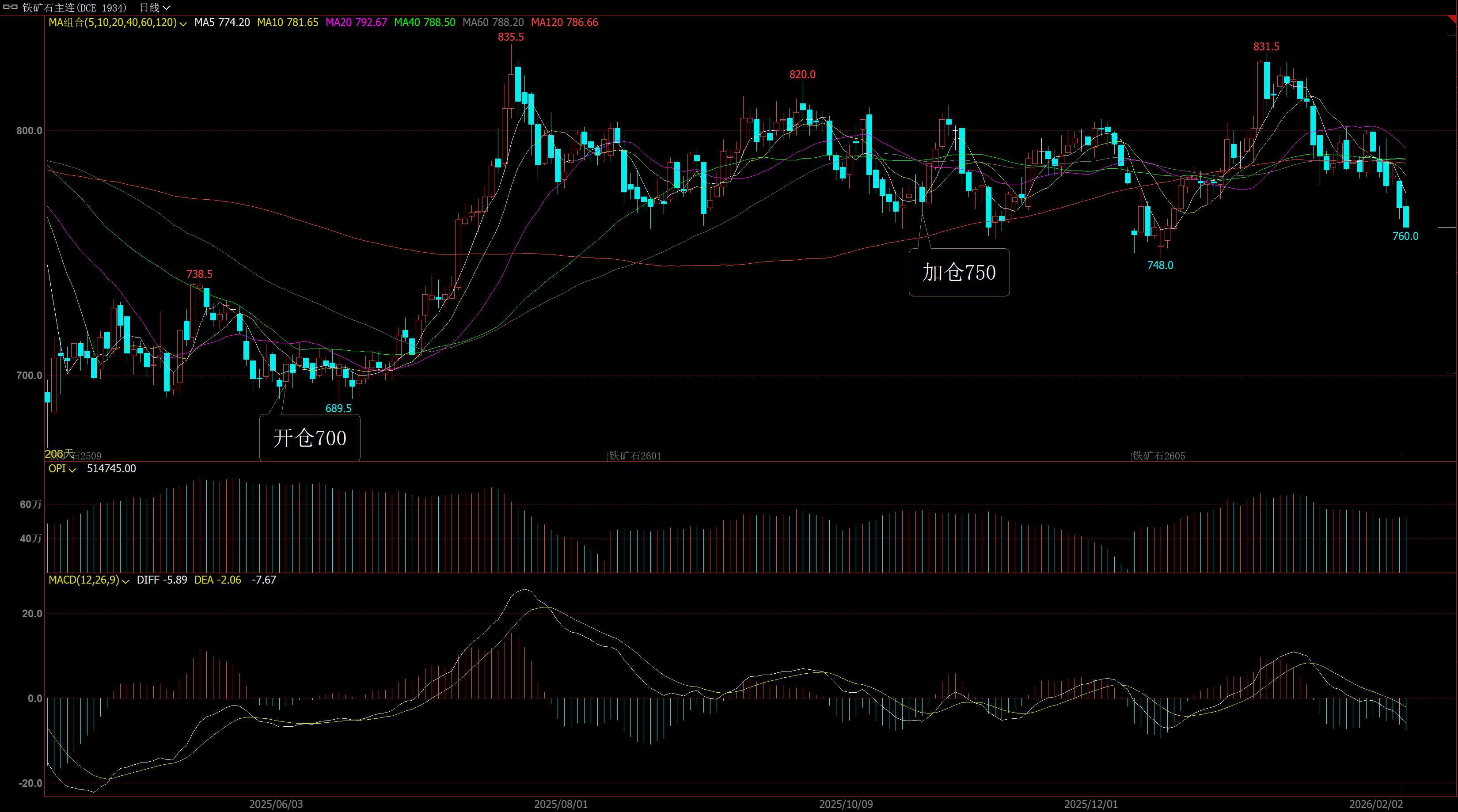 铁矿石现货现在9手(上限15手),卖深虚2605/2609-P-700各5手。