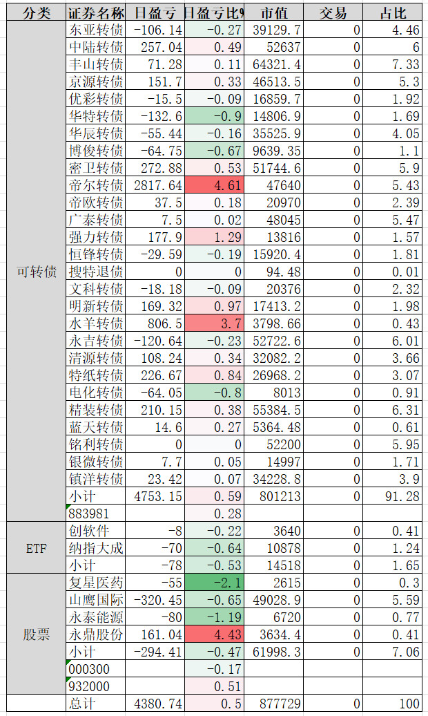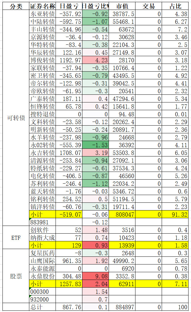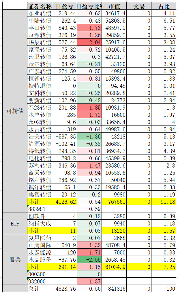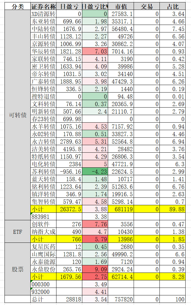 昨天有事没来得及更新,补充:4.16实盘收益1.3%,可转来部分1.53%。