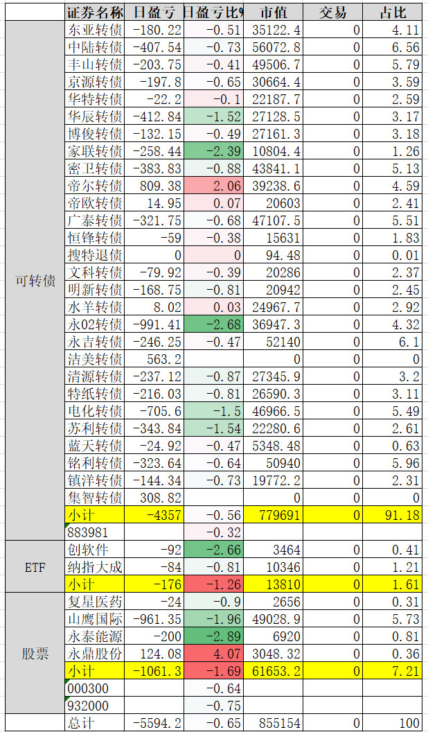 3、本月亏损较大-8.94%,可转债指数跌-8.63%。需改进的:
